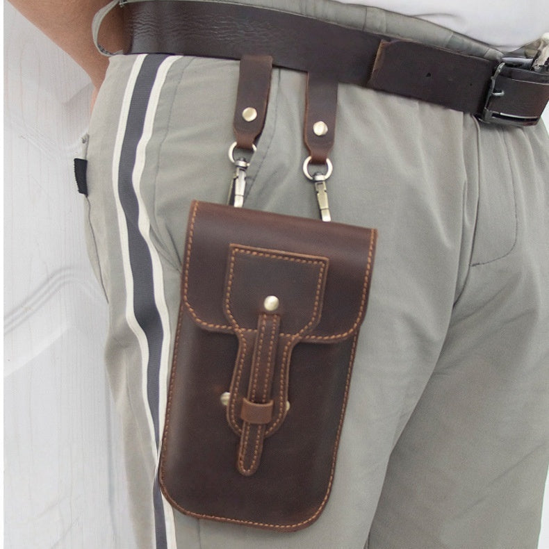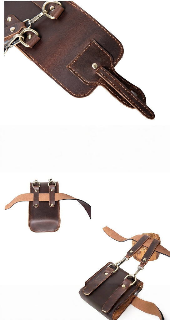 Leather Belt Phone Pouch | Vintage Crazy Horse Leather Multi-Pocket Organizer