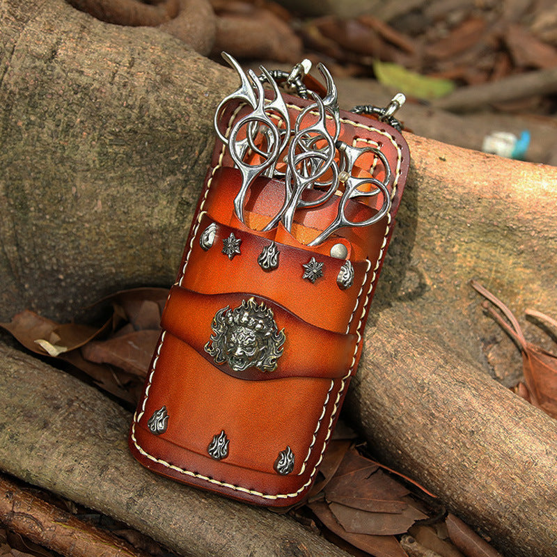 Cool Black Leather Mens Hairstylist Tool case Barber pouch Scissors Cases Scissors Bag for Men