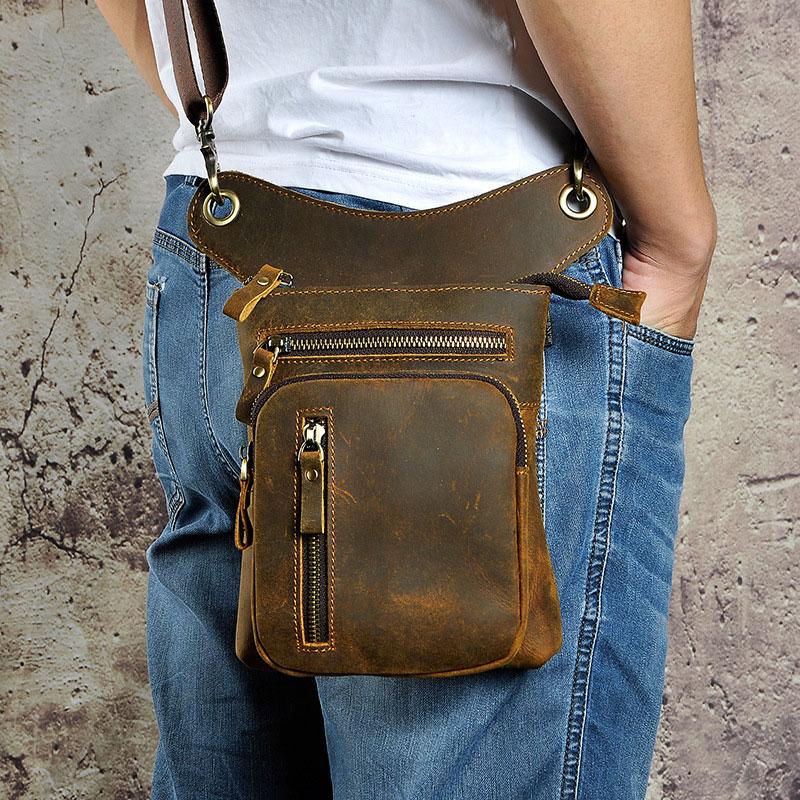 Design: Cool Leather Drop Leg Bag Belt Pouch Mens Waist Bag Shoulder Bag for Men