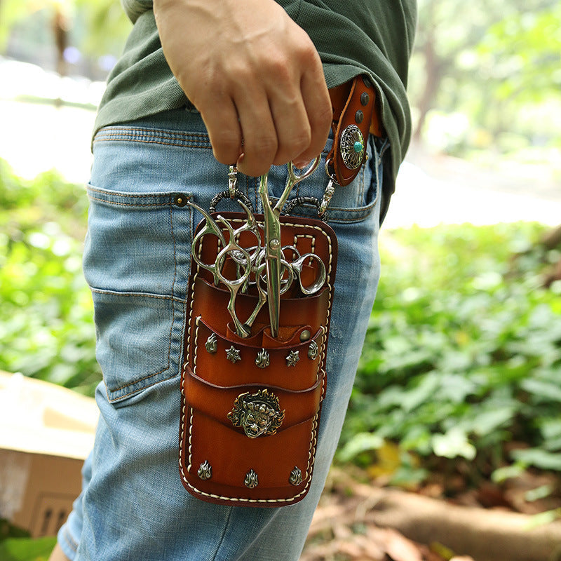 Cool Leather Mens Hairstylist Tool cases Barber pouch Scissors Cases Scissors Bag for Men