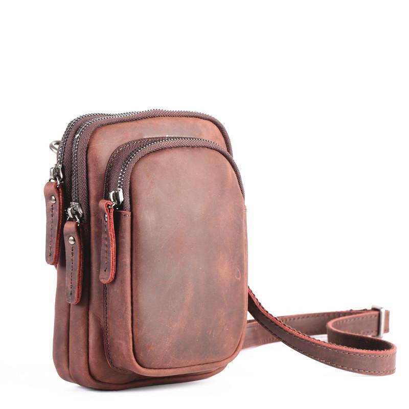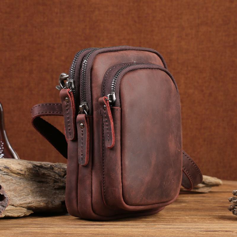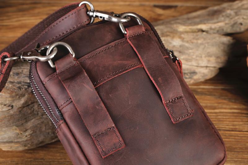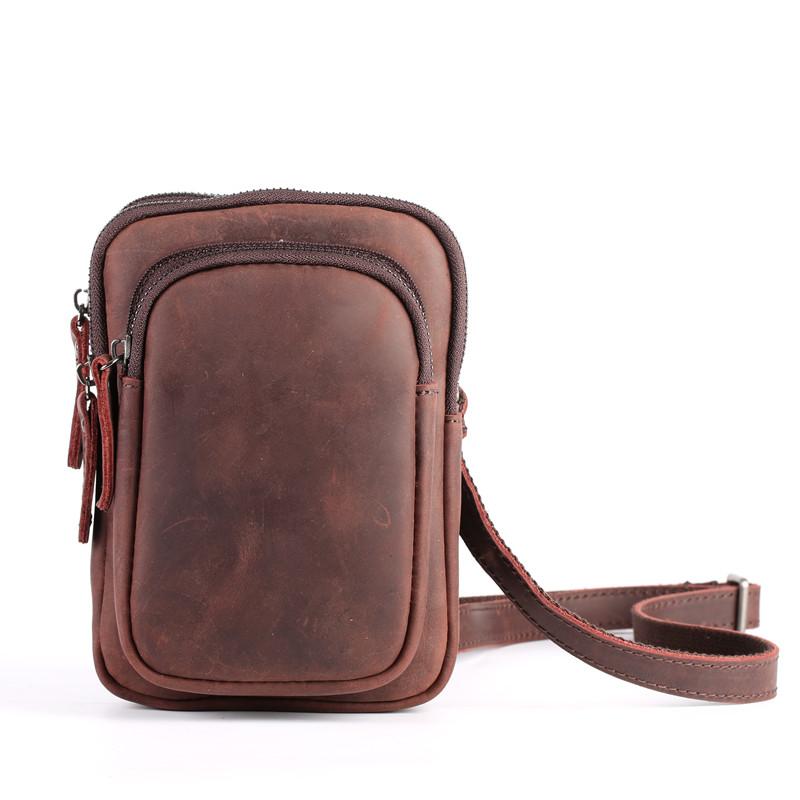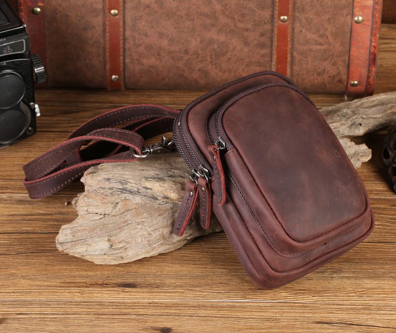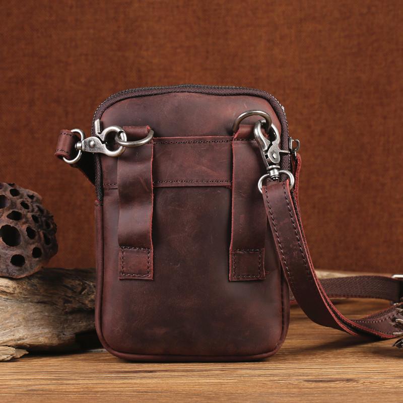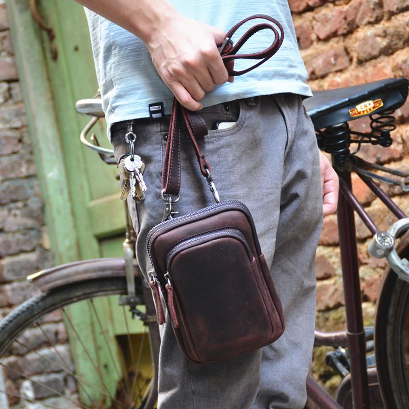 Design: Cool Mens Leather Barrel Belt Pouch Mini Shoulder Bag Waist Bag Belt Phone Holster For Men