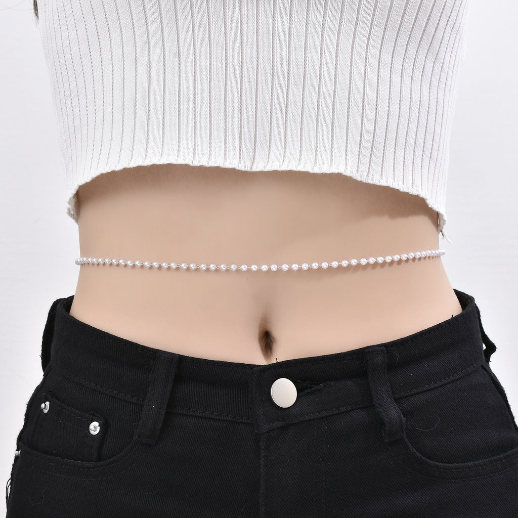 Style: Cute Fake Pearls Belly Chain Women Waist Chain The Waist Adjustable