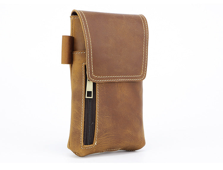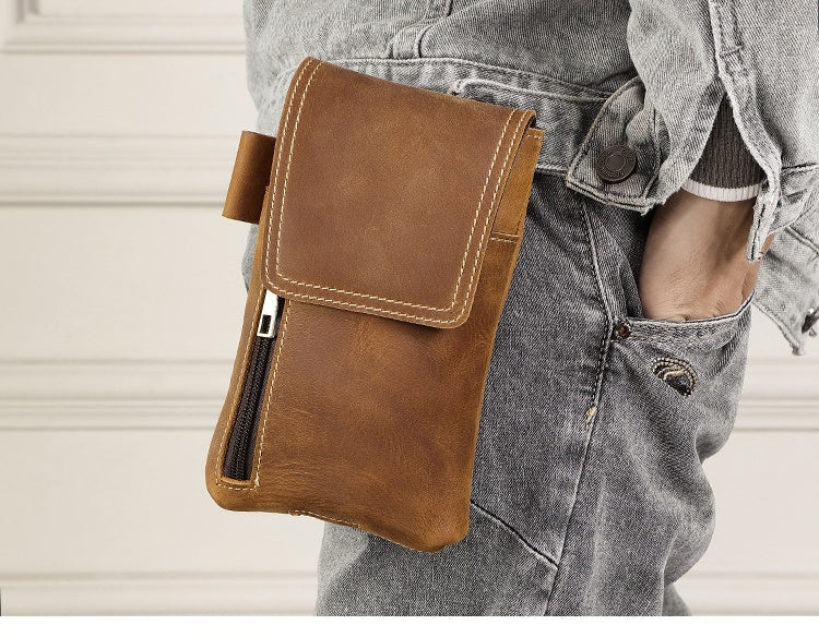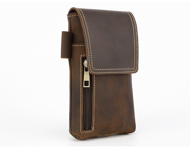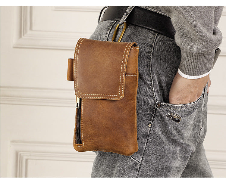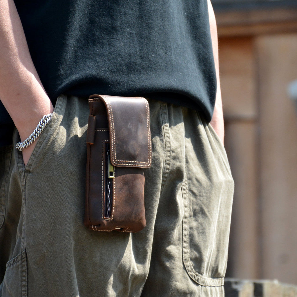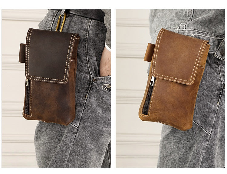 Leather Belt Phone Pouch | Vintage Crazy Horse Leather Multi-Pocket Organizer