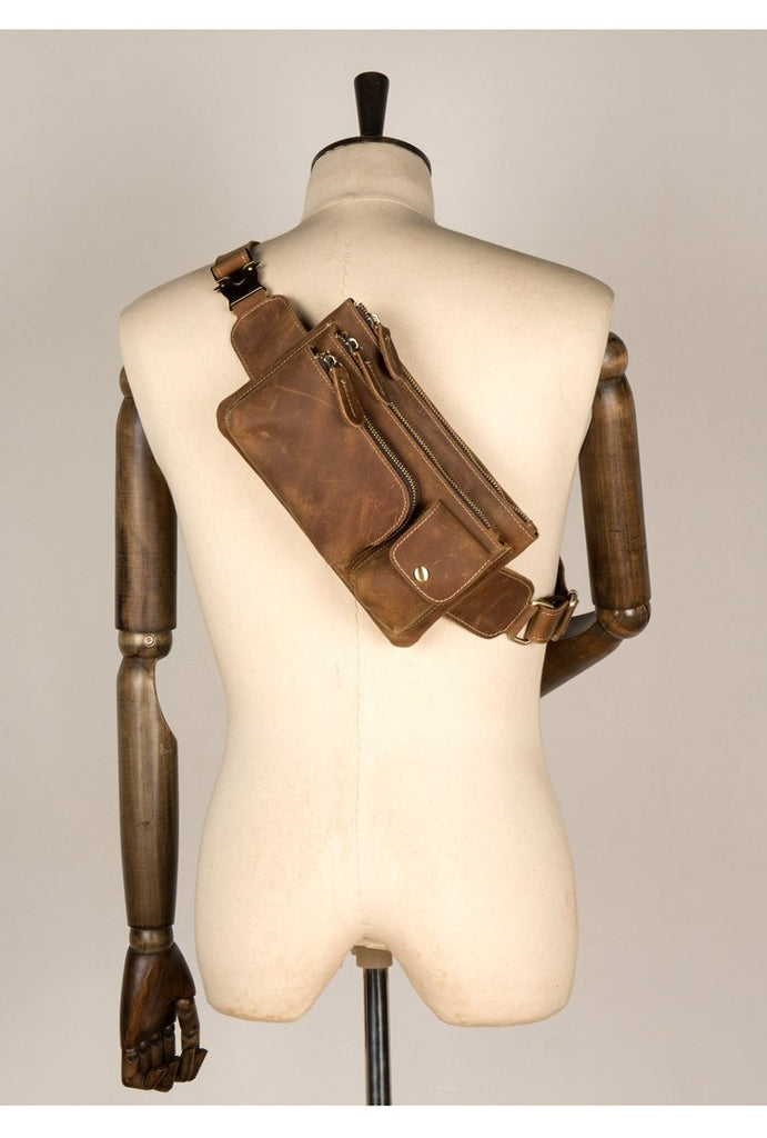 Style: Dark Brown Leather Mens Fanny Pack Light Brown Waist Bag Hip Pack Belt Bag Bumbag for Men