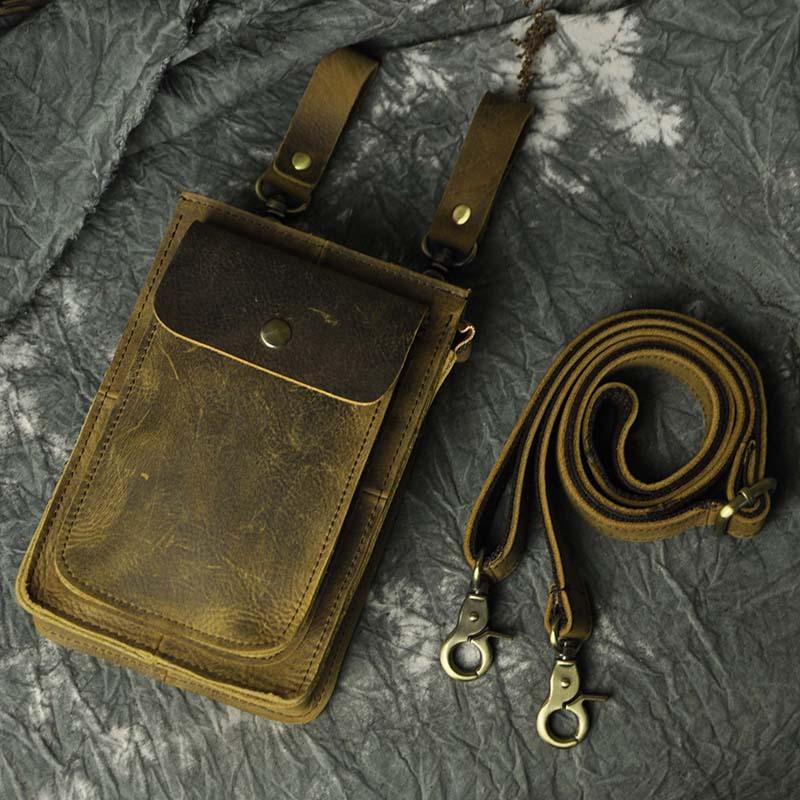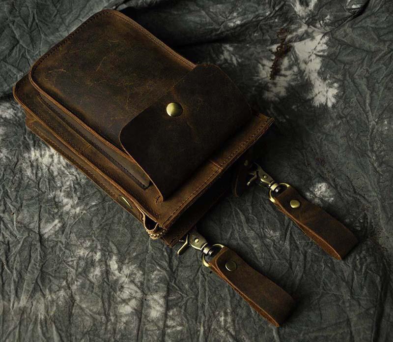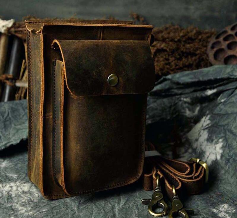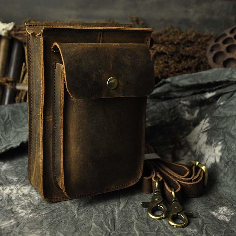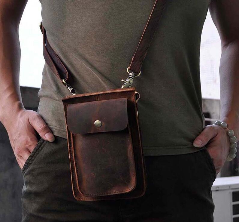 Design: Handmade Leather Mens Waist Bag Hip Pack Belt Bag Fanny Pack Bumbag Chest Bag Sling Bag for Men