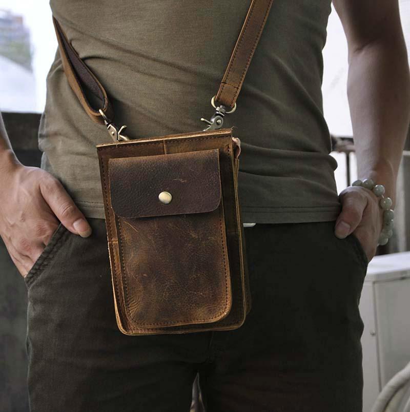 Style: Handmade Leather Mens Waist Bag Hip Pack Belt Bag Fanny Pack Bumbag Chest Bag Sling Bag for Men