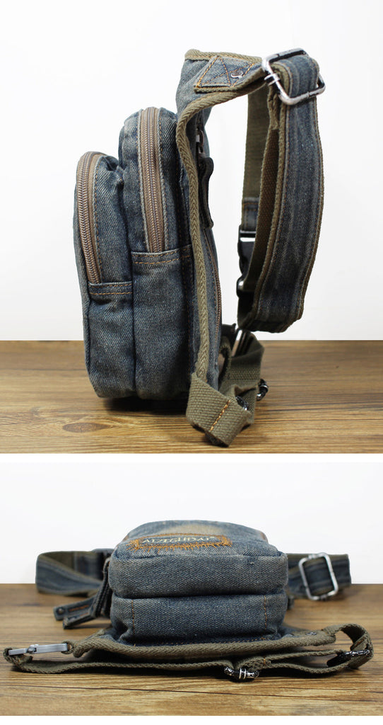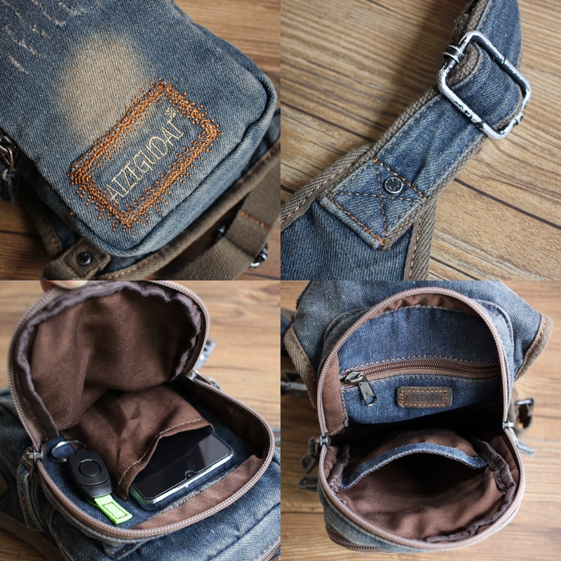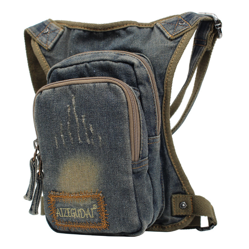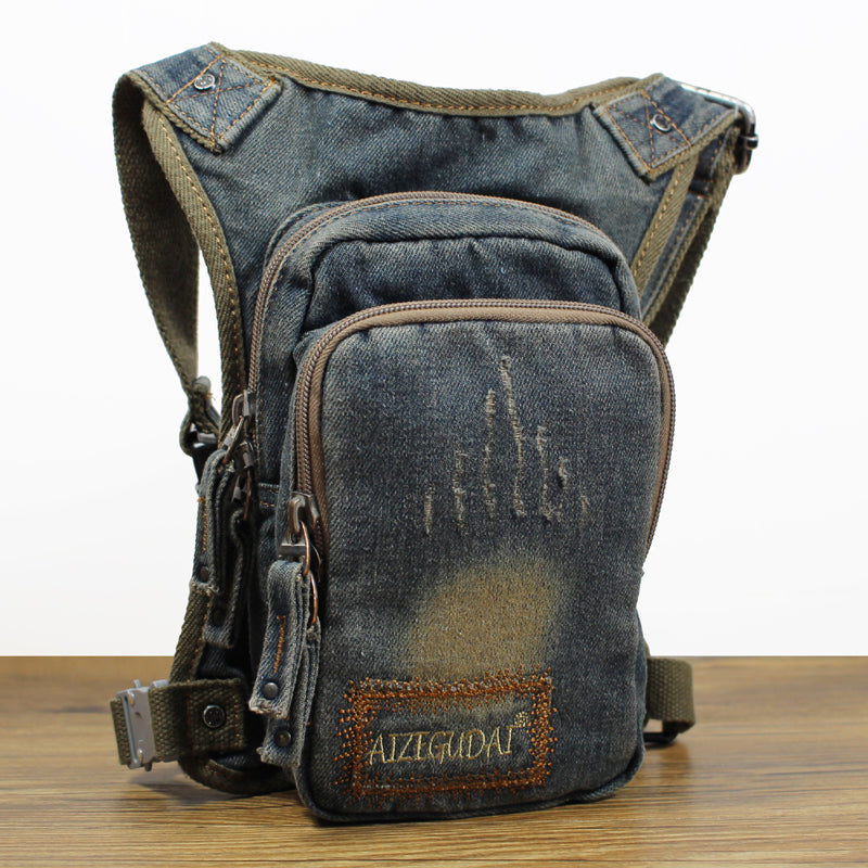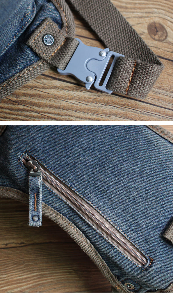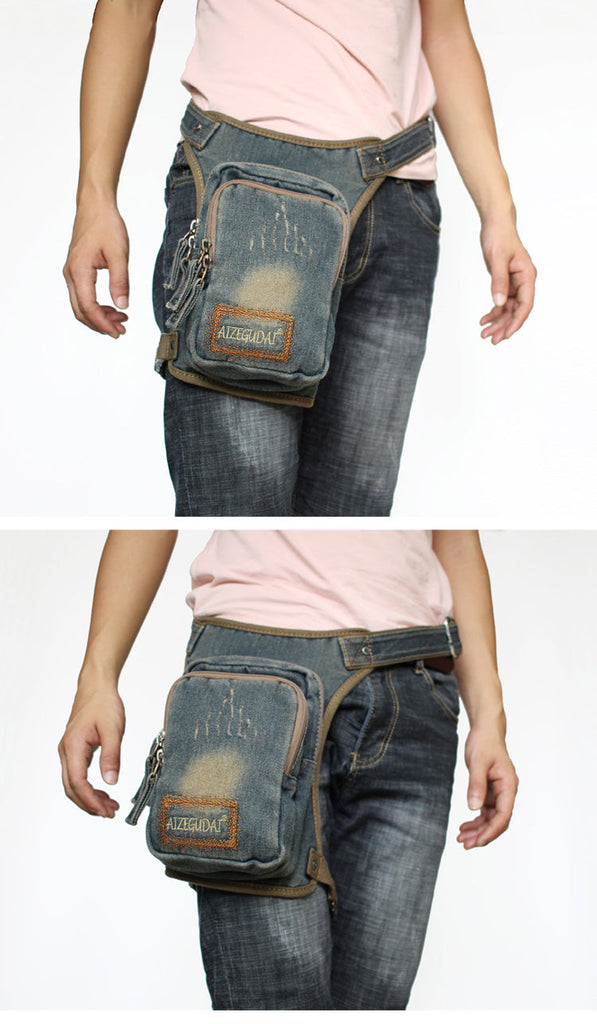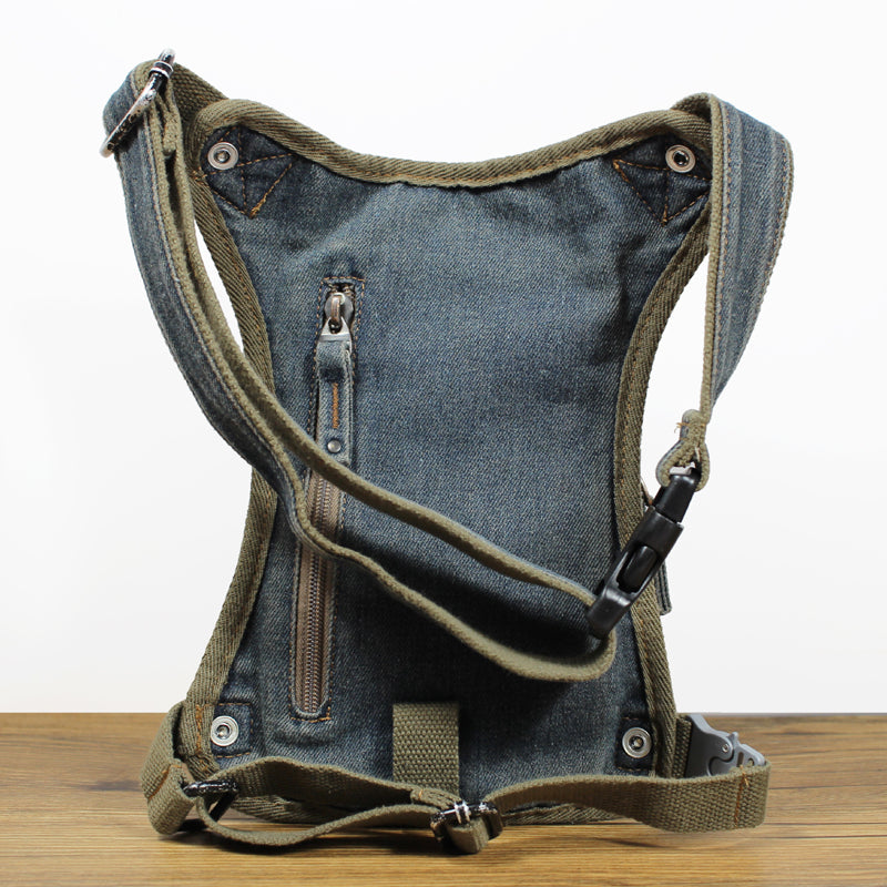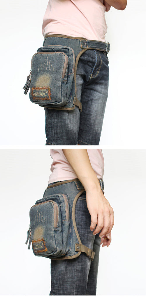 Design: Mens Denim Thigh Bag Fanny Pack for Men Drop Leg Bag Blue Denim Bum Bag Waist Bags