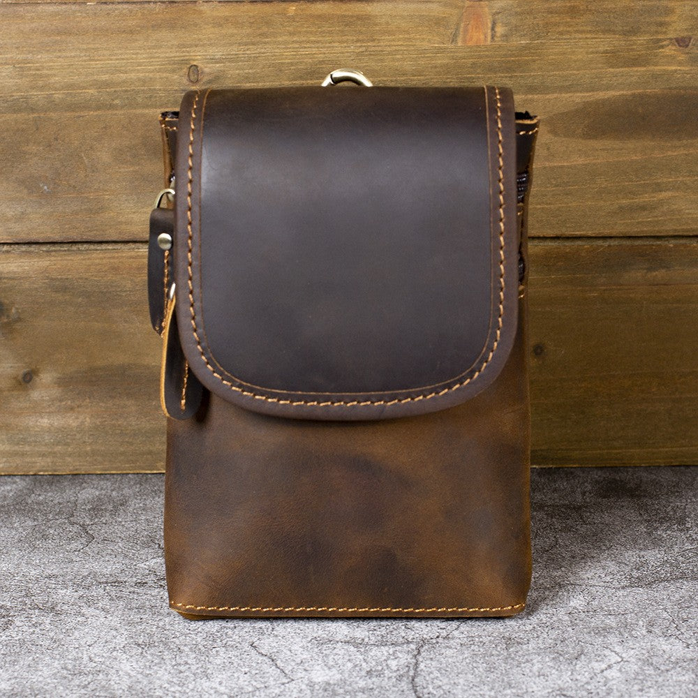 Mens Leather Belt Bag - Premium Crazy Horse Leather