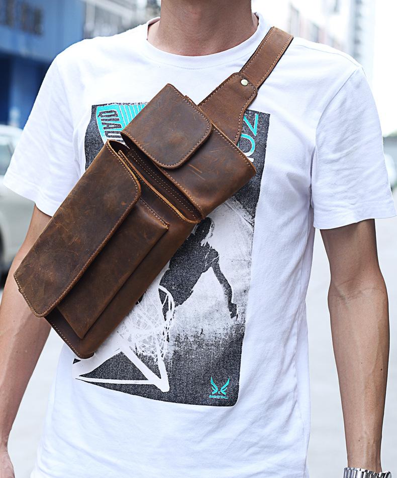 Design: Cool Fashion LEATHER MEN'S Fanny Pack Waist Pack Belt Bag Belt Pack For Men