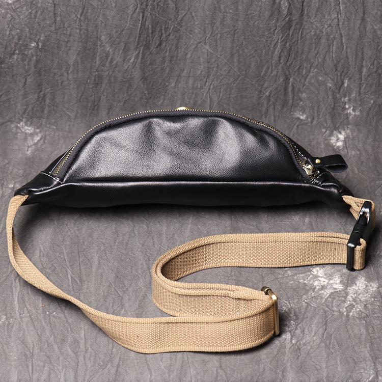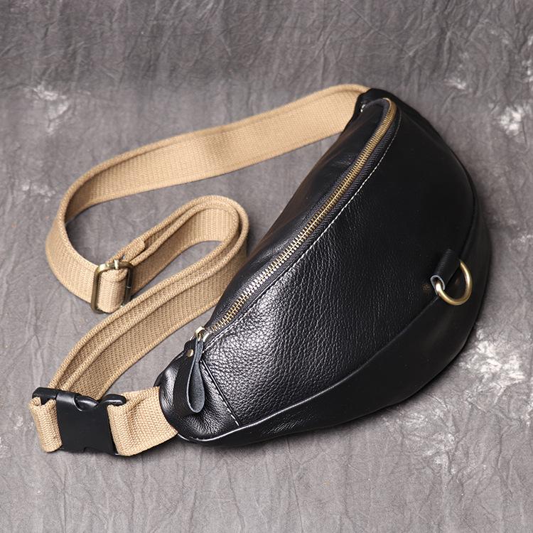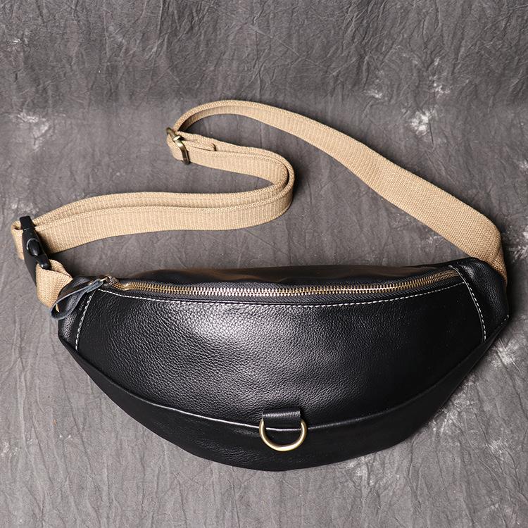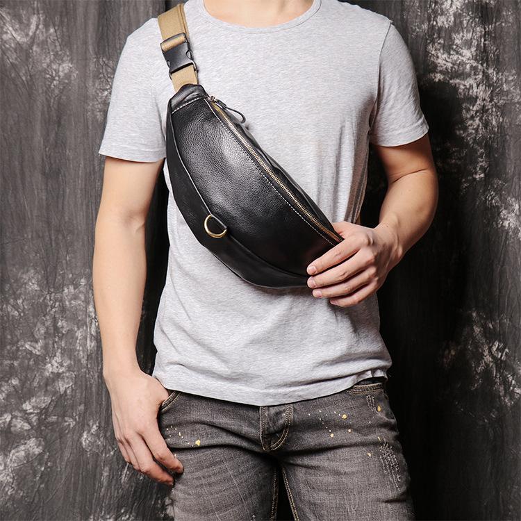 Style: Simple Leather Fanny Pack Men's Black Chest Bag Hip Bag 8 inches Waist Bag For Men