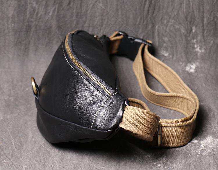 Design: Simple Leather Fanny Pack Men's Black Chest Bag Hip Bag 8 inches Waist Bag For Men