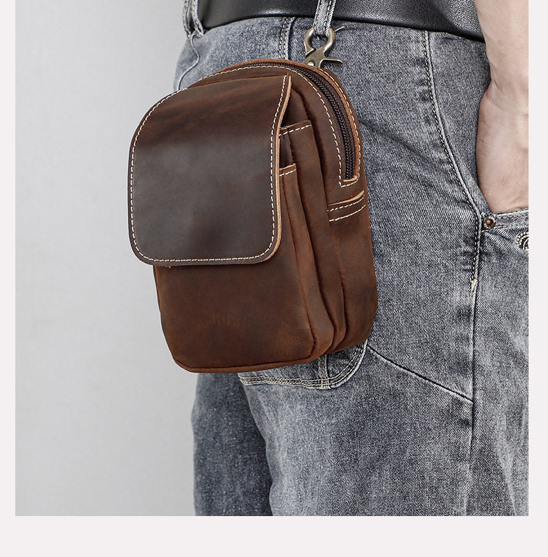 Leather Belts Pouches | Hands-Free Vintage Belt Loop Pouch in Crazy Horse Leather