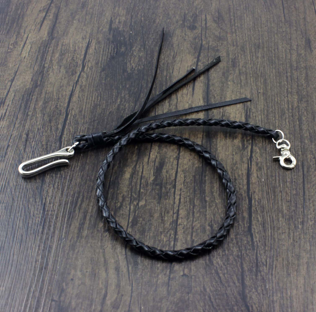 Design: Handmade Braided Black Leather Cool Punk Rock Wallet Chain Biker Trucker Wallet Chain Trucker Wallet Chain for Men