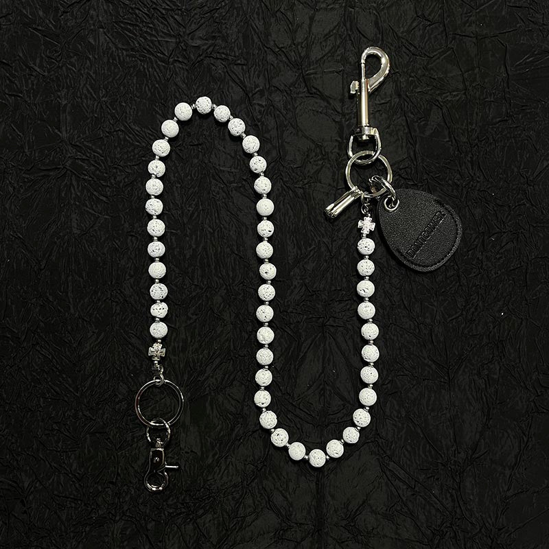 Style: Beaded Wallet Chain Womens White Lavastone Long Bead Wallet Chain with Keyring