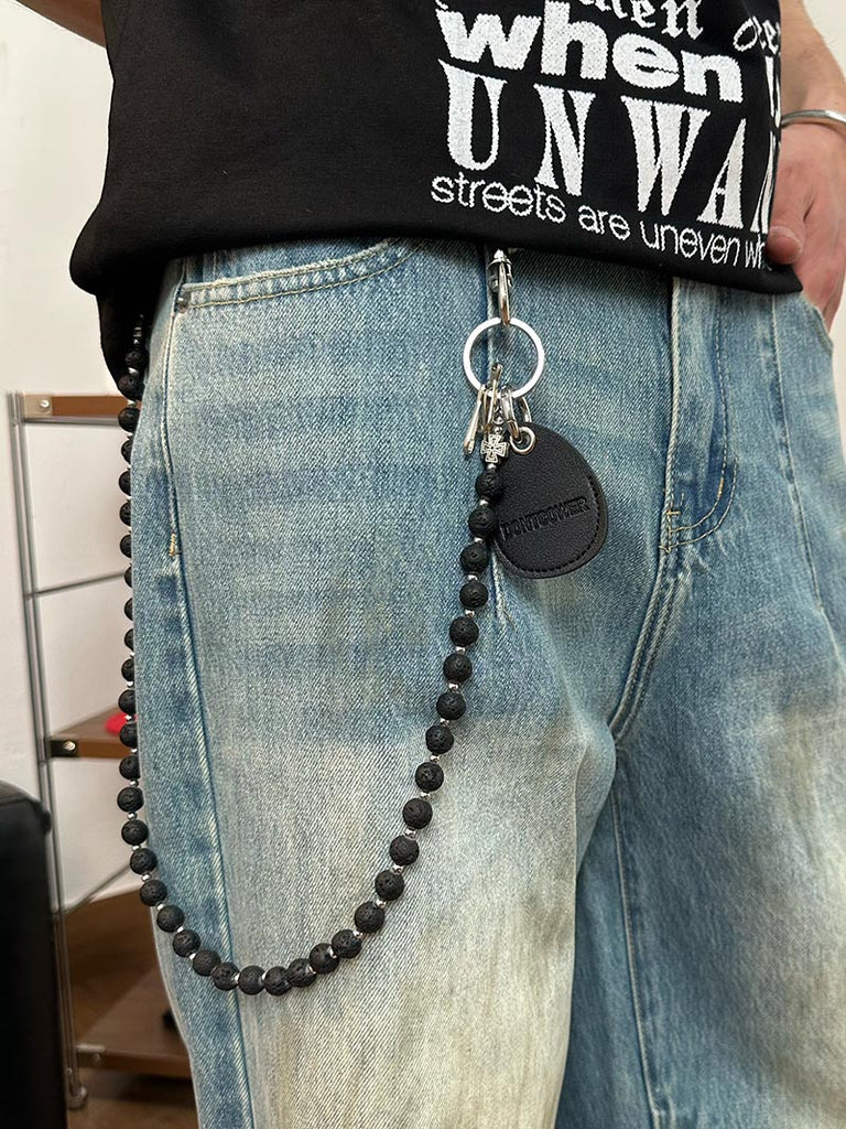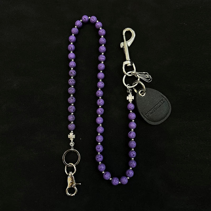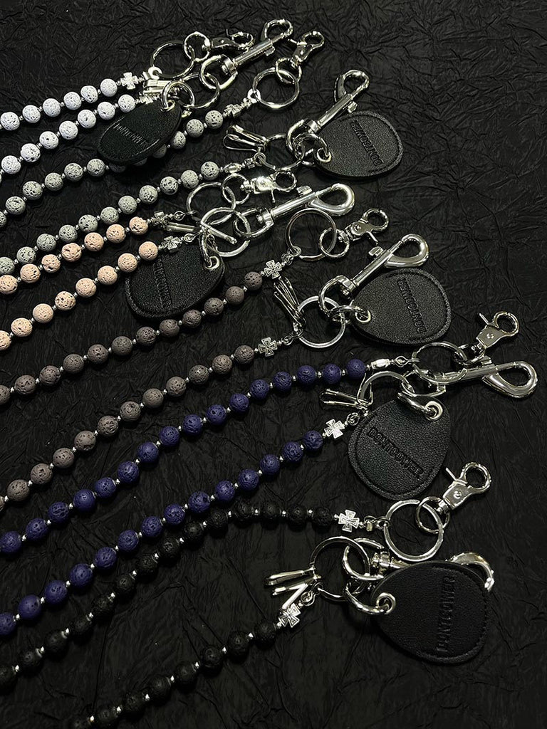 Whether you choose a bold hue for maximum impact or a subtle tone for daily wear, this beaded Wallet Chain adapts to your style while providing practical key management. The natural lavastone construction ensures durability and unique character, with each bead displaying subtle natural variations.