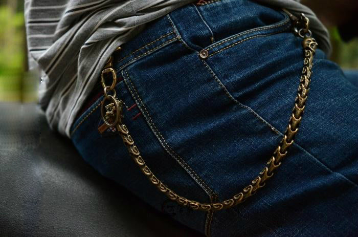 Style: Solid Brass Cool Punk Rock Snake Bone Skull Wallet Chain Biker Trucker Wallet Chain Trucker Wallet Chain for Men