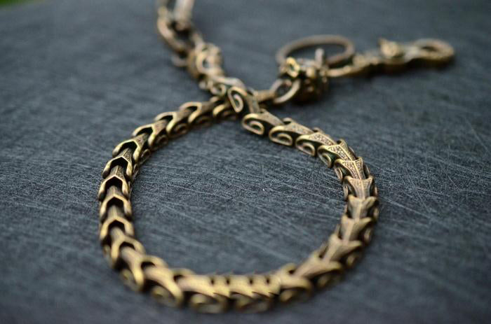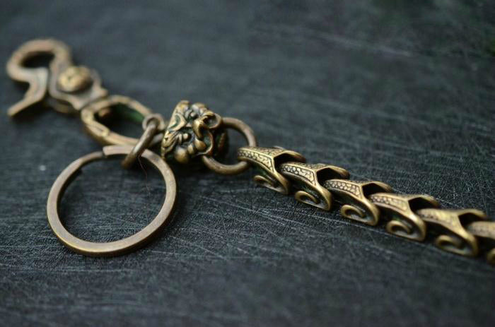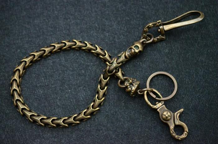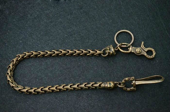 Design: Solid Brass Cool Punk Rock Snake Bone Skull Wallet Chain Biker Trucker Wallet Chain Trucker Wallet Chain for Men