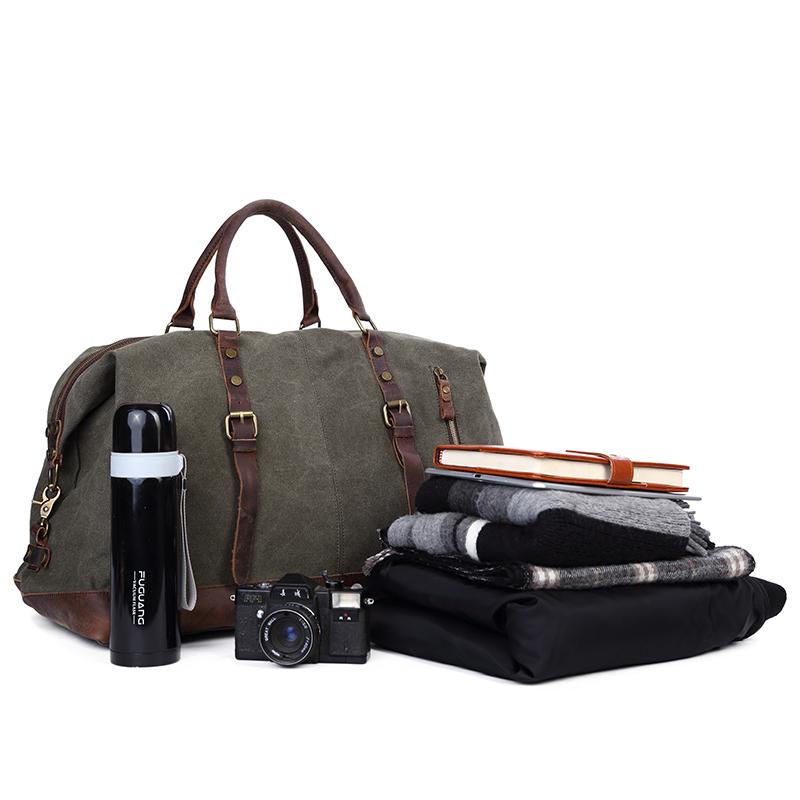 Design: Canvas Leather Mens Large Blue Tote Bag Shoulder Bag Army Green Travel Bag Luggage Bag for Men
