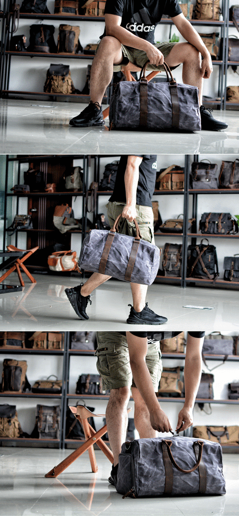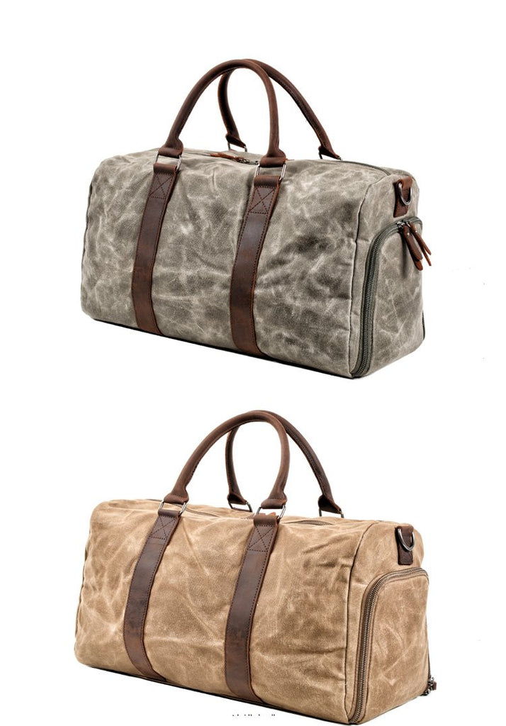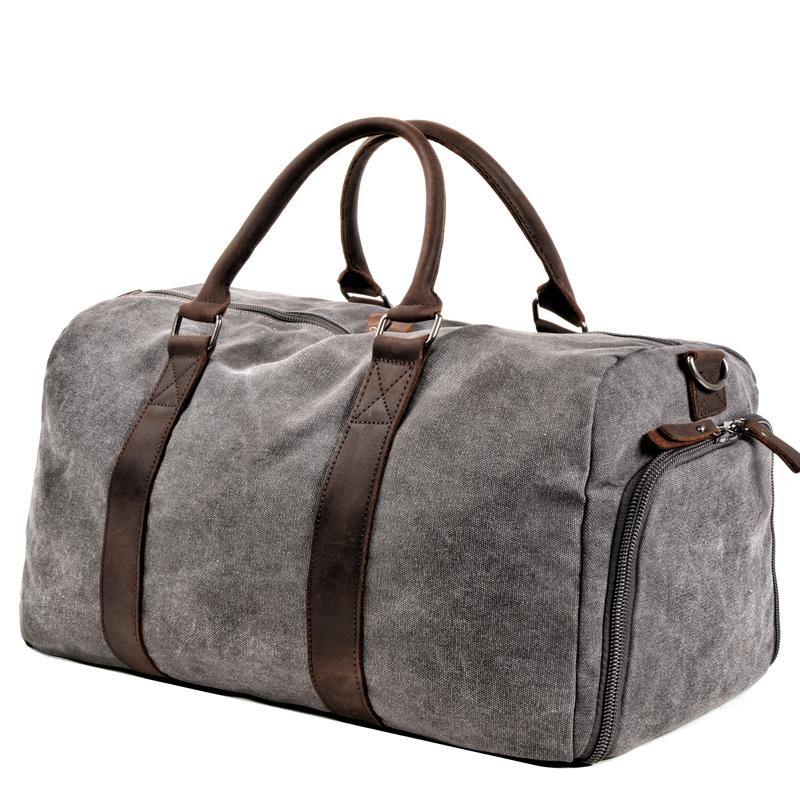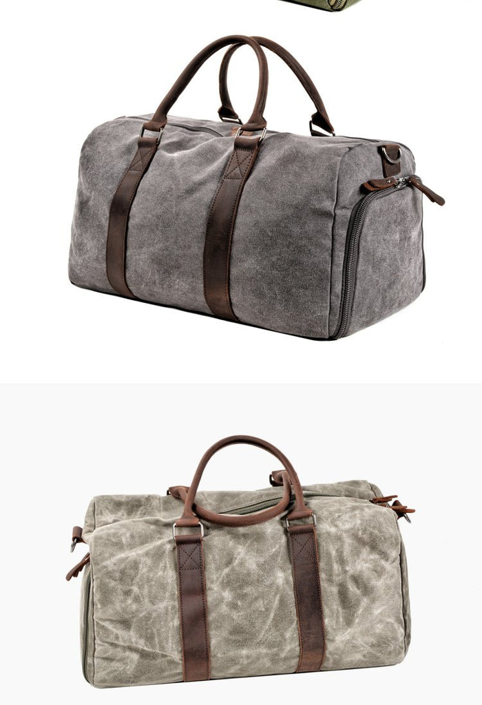 Design: Cool Canvas Leather Mens Simple Large Travel Weekender Bag Waterproof Duffle bag for Men