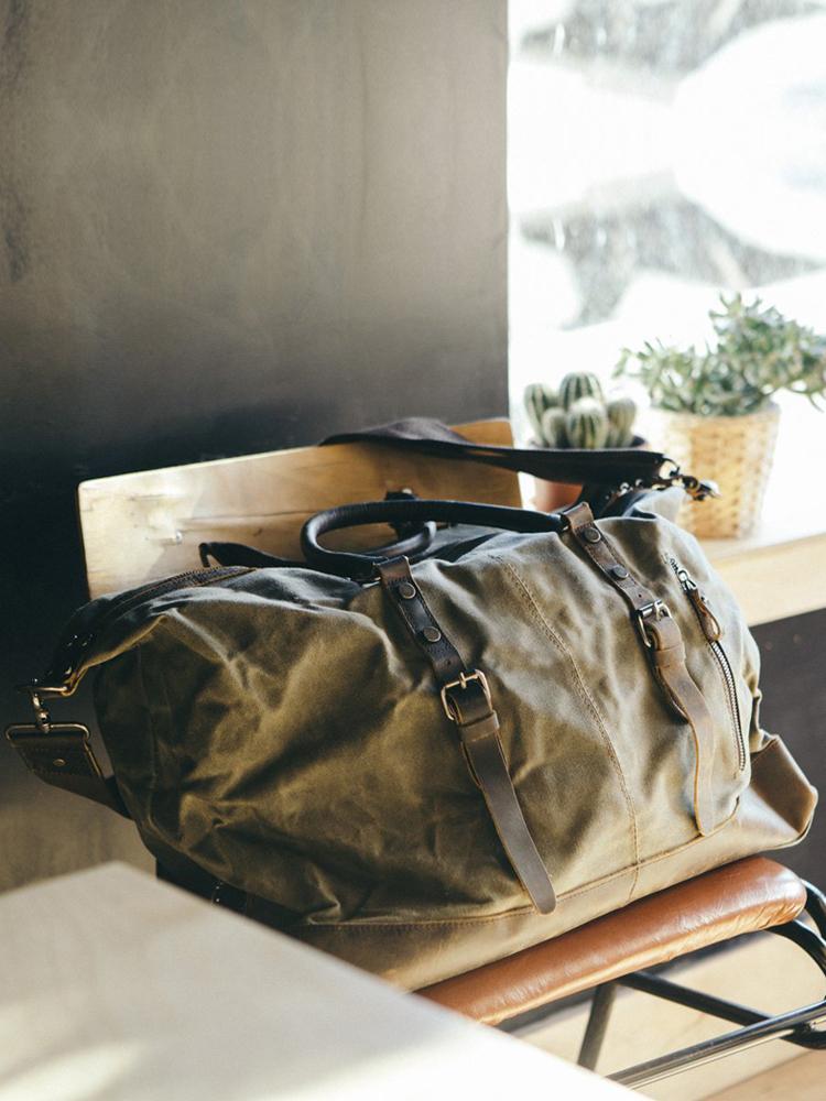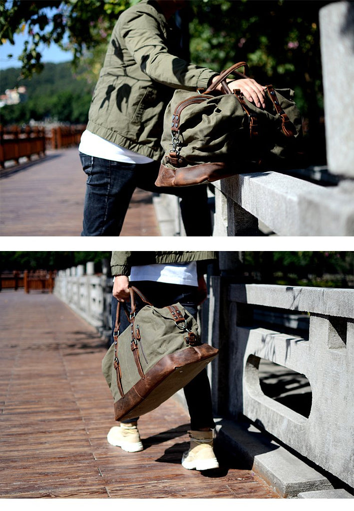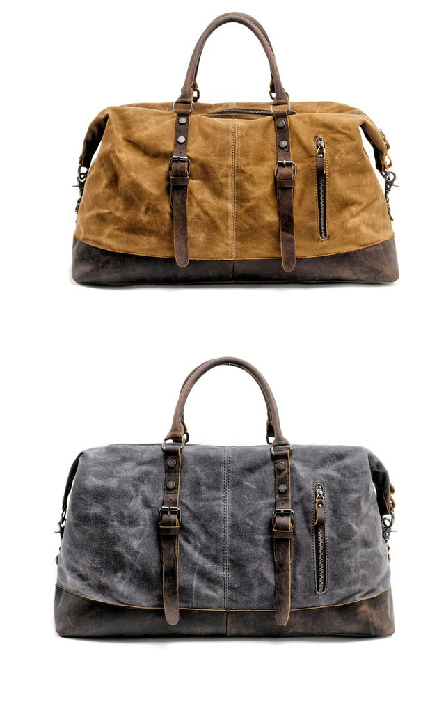 Design: Cool Canvas Leather Mens Travel Weekender Bag Waterproof Duffle bag for Men