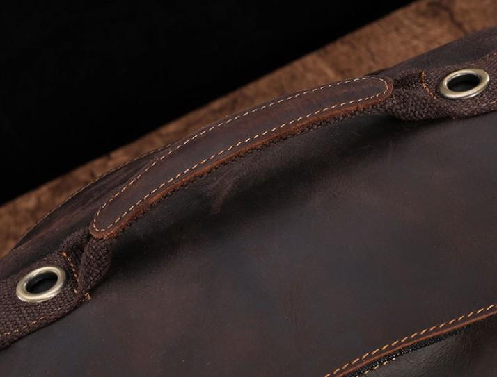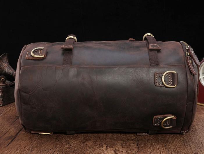 Design: Cool Mens Leather Barrel Backpack Overnight Bag Travel Backpack Weekender Bag for men