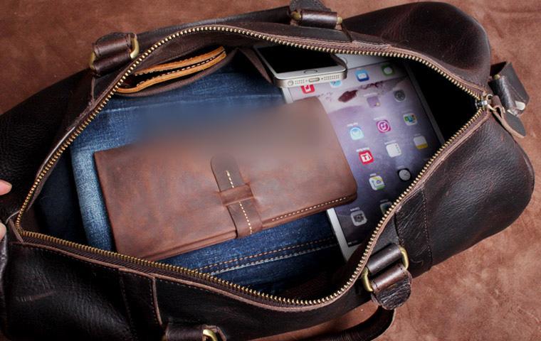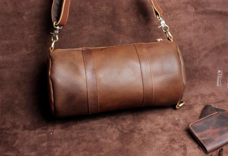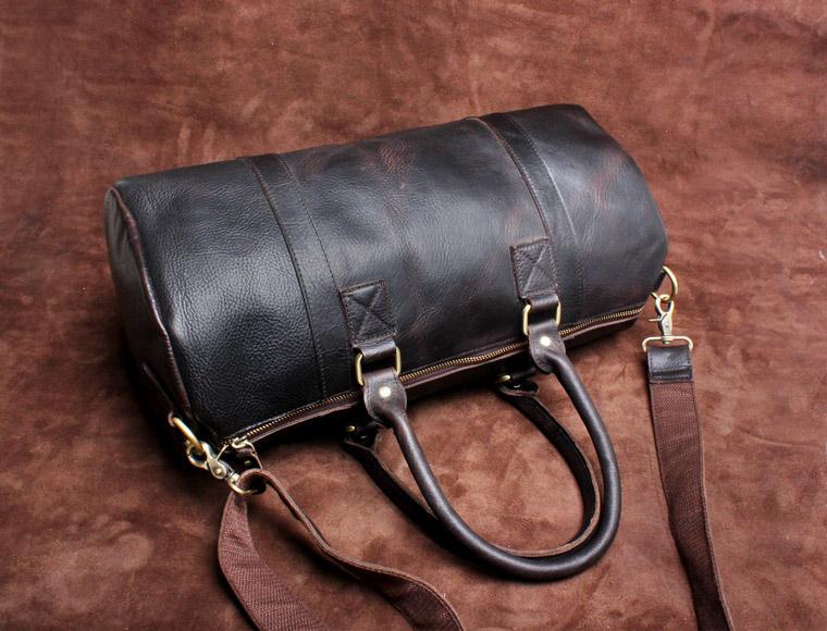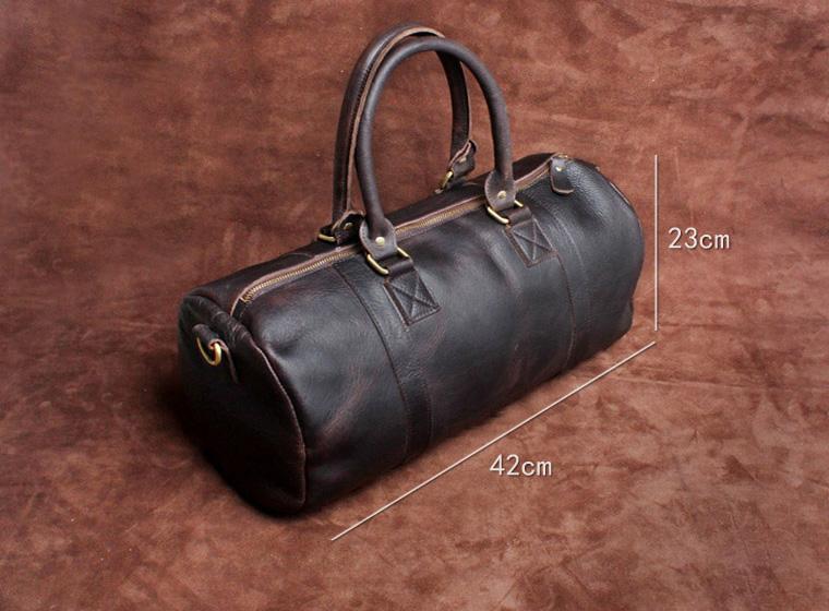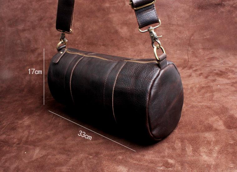 Design: Genuine Leather Mens Bucket Bag Round Circle Bag Cool Weekender Bag Travel Bag Duffle Bags Overnight Bag Holdall Bag for men