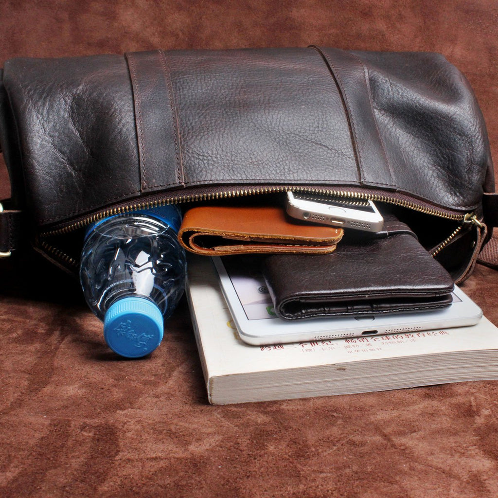 Style: Genuine Leather Mens Bucket Bag Round Circle Bag Cool Weekender Bag Travel Bag Duffle Bags Overnight Bag Holdall Bag for men