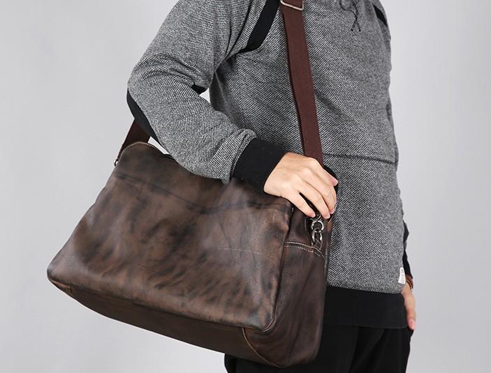 Design: Genuine Leather Mens Travel Bag Cool Messenger Bag Shoulder Bag Handbag Weekender Bag for Men