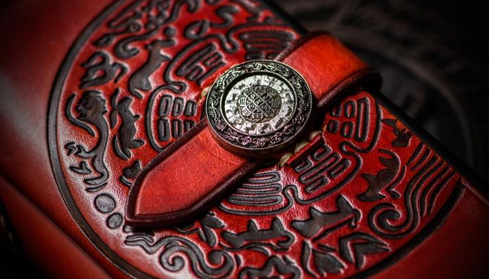 Design: Handmade Leather Tibetan Mens Chain Biker Wallet Cool Leather Wallet Long Clutch Wallets for Men