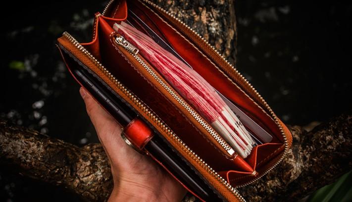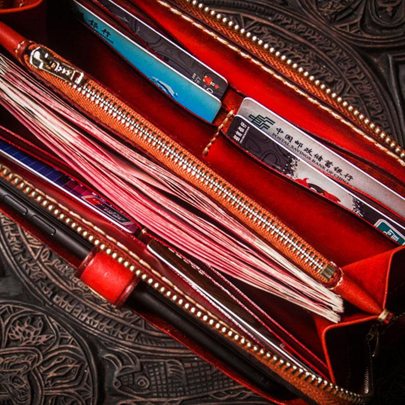 Slots: 2 full size bill slot, 8 card holders, 1 zipper slot