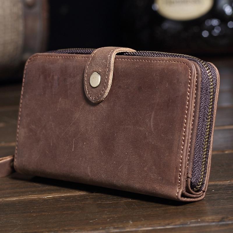 Design: Vintage Brown Leather Men's Bifold Long Wallet Cool Zipper Long Wallet Clutch For Men