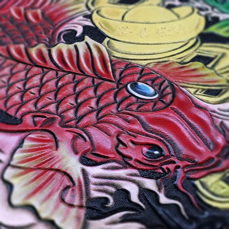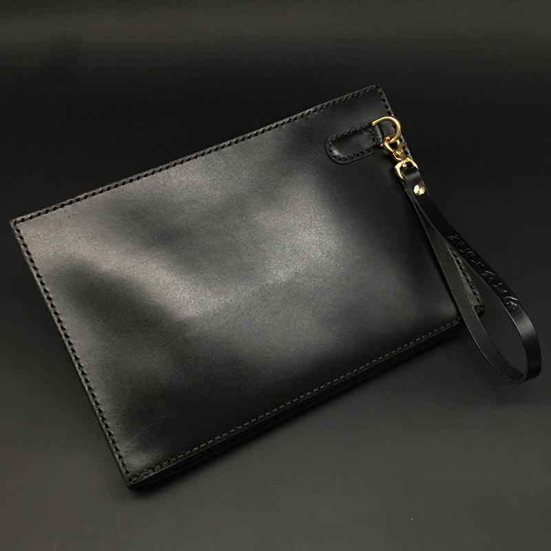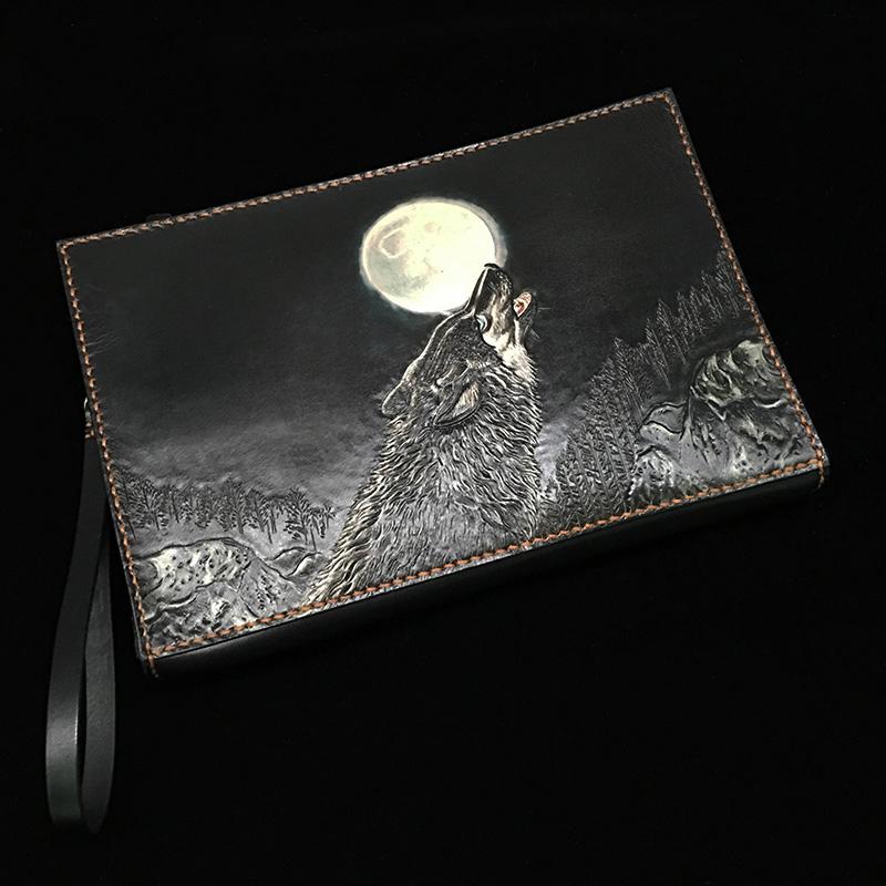 Design: Handmade Black Tooled Double Carp Leather Messenger Bags Side Bag Clutch Wristlet Bag For Men
