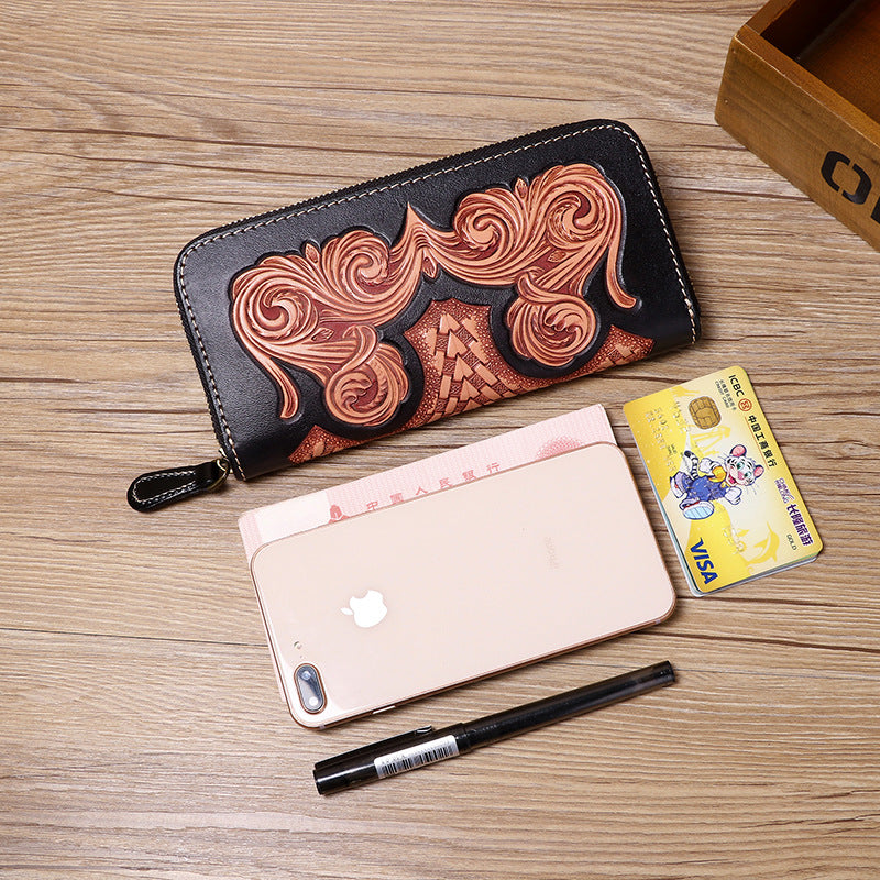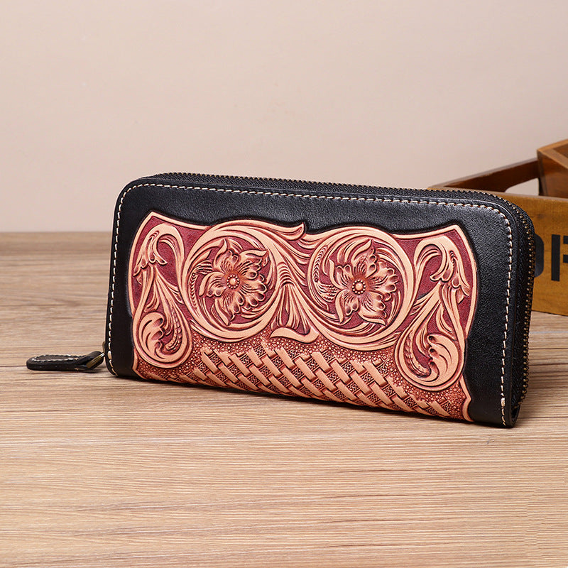 Style: Cool Leather Floral Tooled Zipper Around Wallet Handmade Clutch Zipper Wallet for Men
