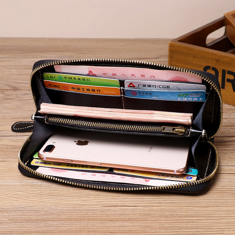 Cool Leather Floral Tooled Zipper Around Long Wallet Handmade Clutch Zipper Wallet for Men