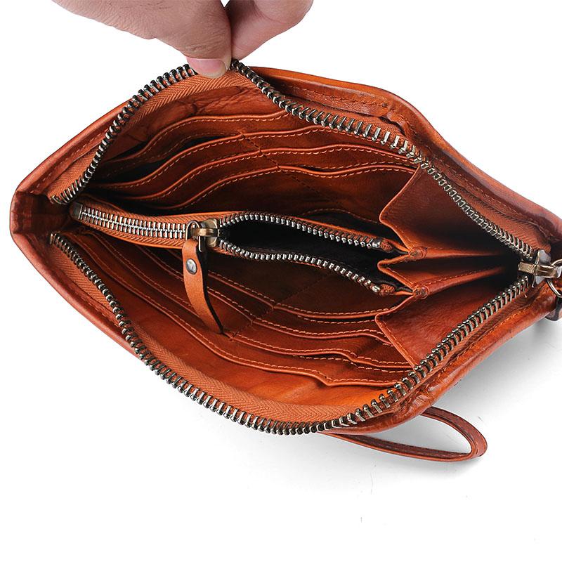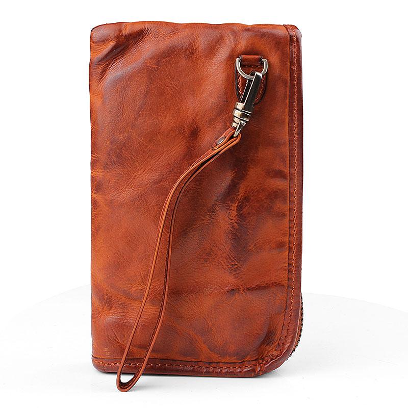Design: Cool Leather Mens Brown Long Wallet Black Wristlet Wallet Black Clutch Wallet Card Wallet for Men