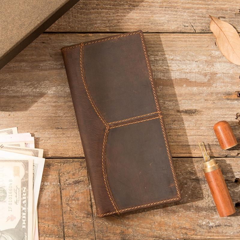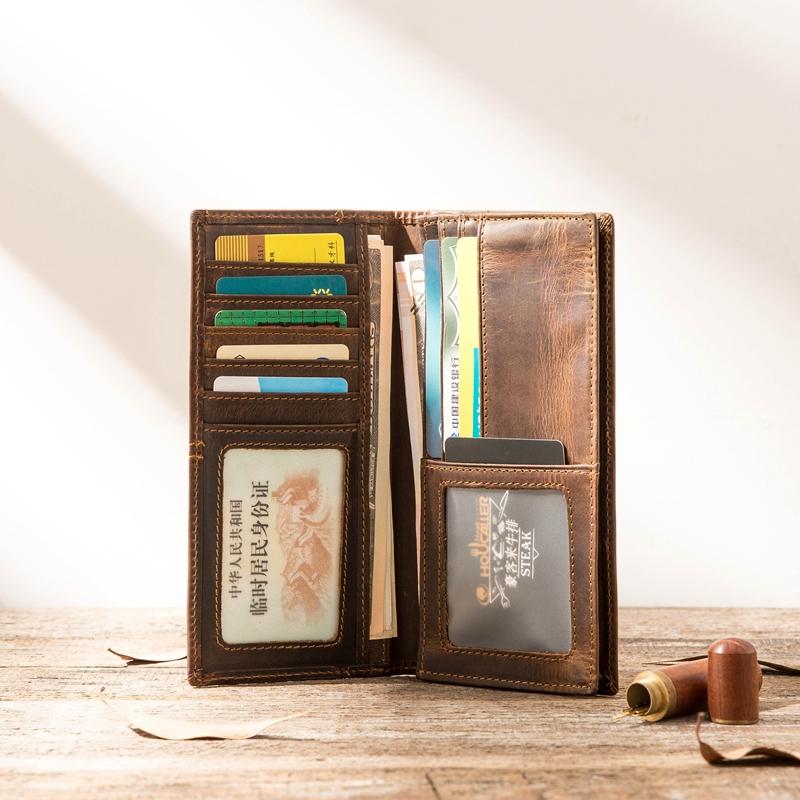 Style: Cool Leather Mens Dark Brown Long Zipper Clutch Wallets Long Wallet Card Wallet for Men