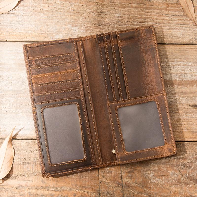 Design: Cool Leather Mens Dark Brown Long Zipper Clutch Wallets Long Wallet Card Wallet for Men