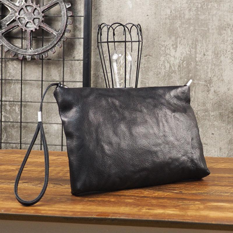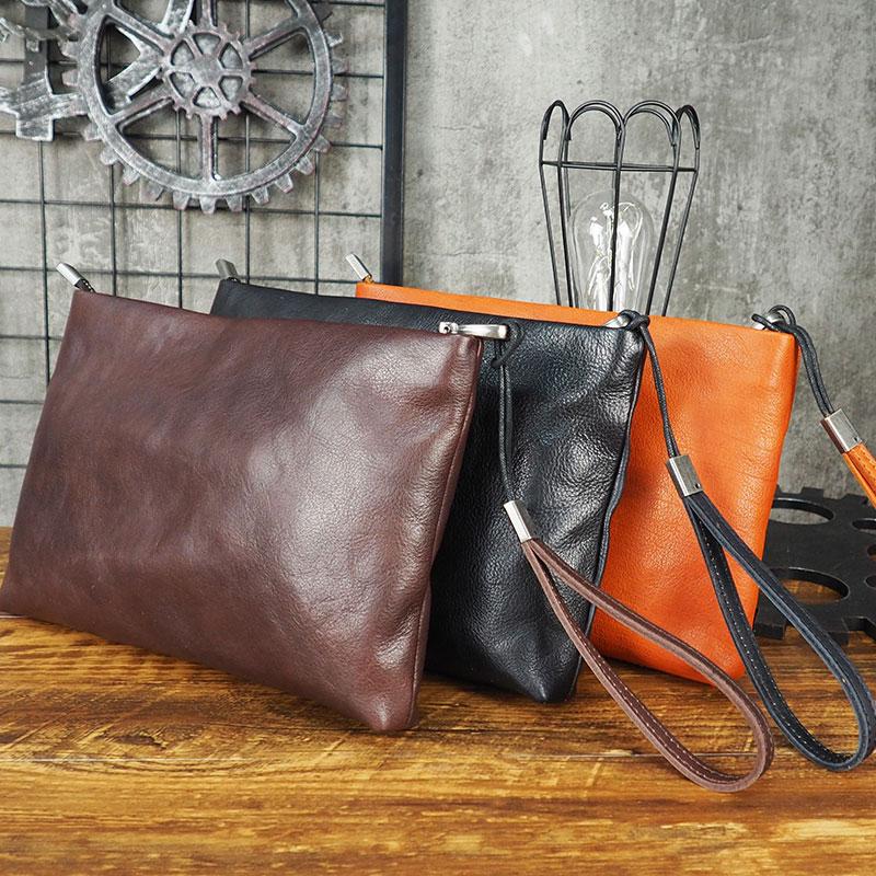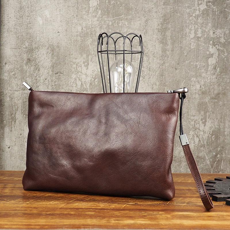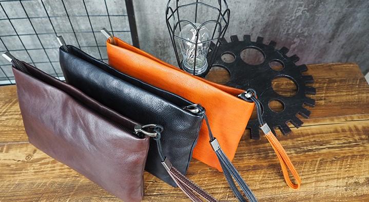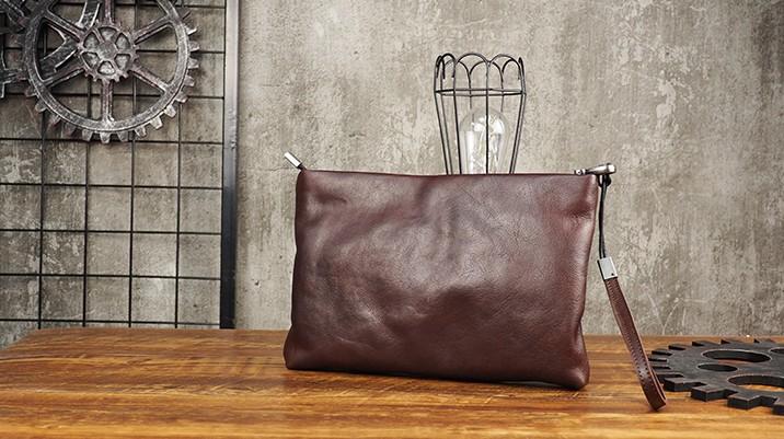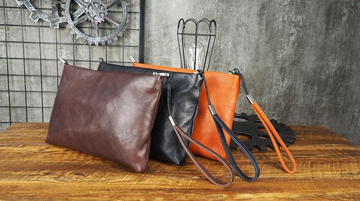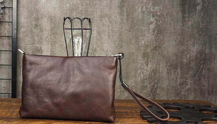 Design: Cool Leather Mens Soft Leather Zipper Clutch Bag Wristlet Purse for Men