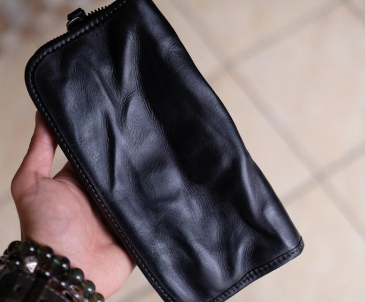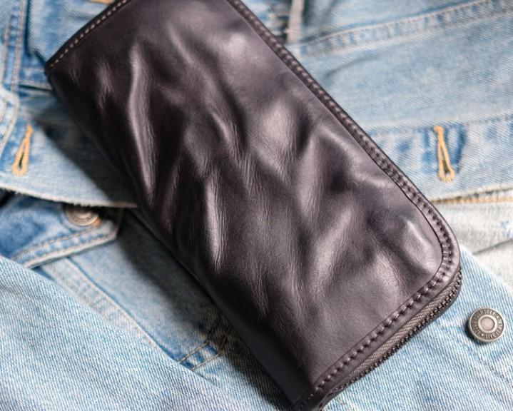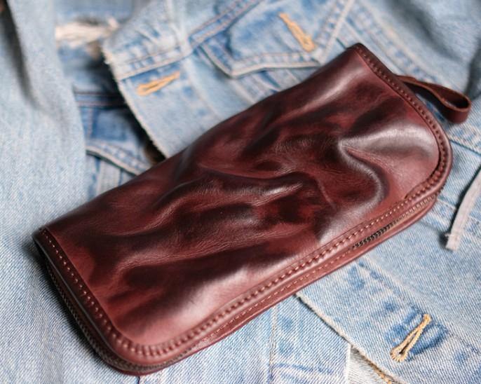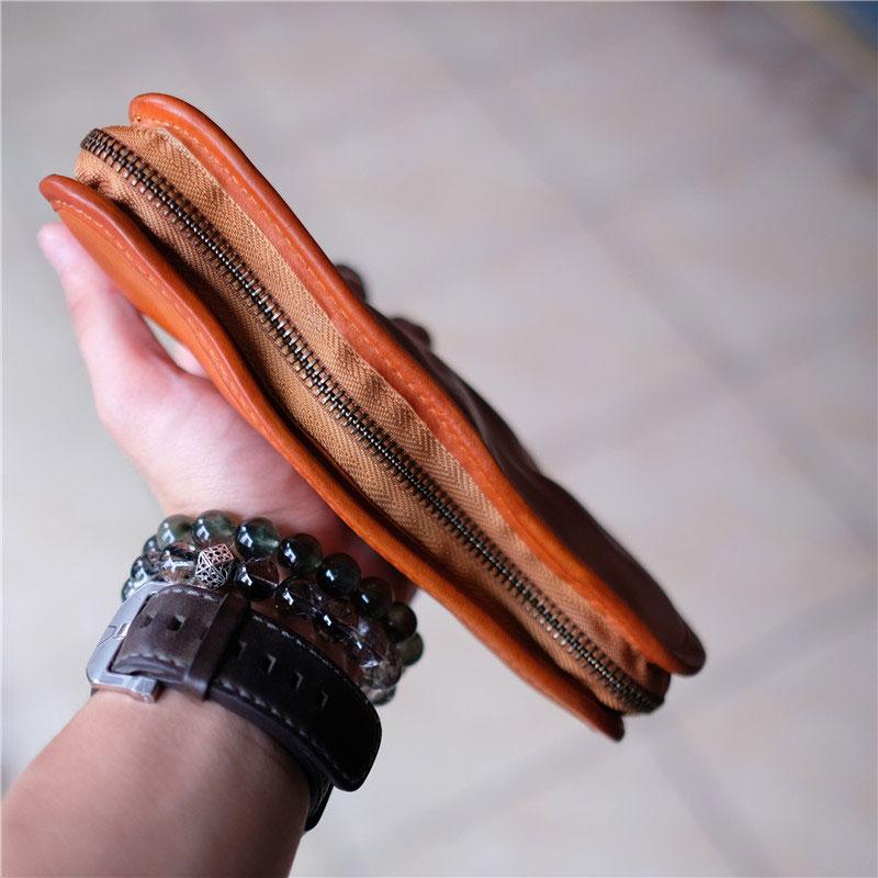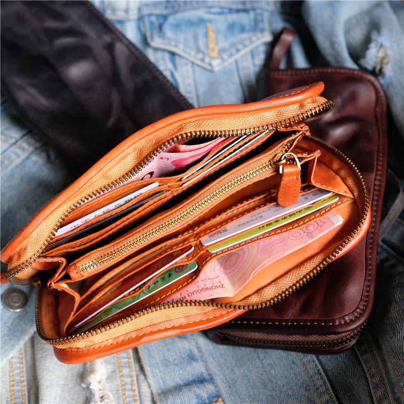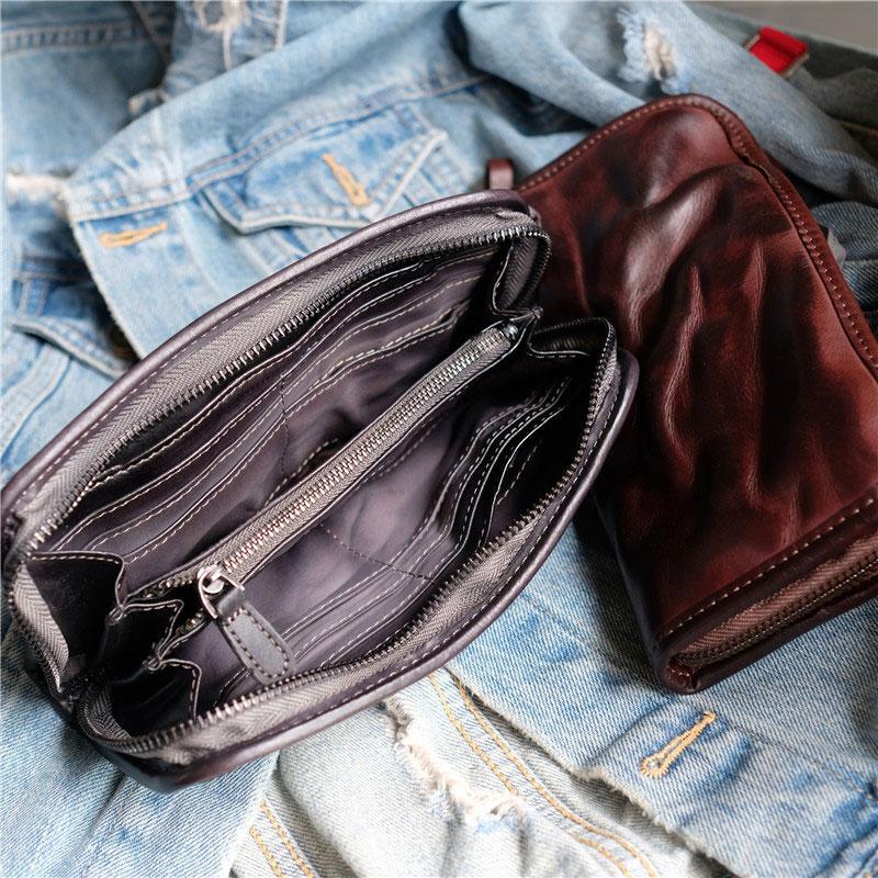 Cool Mens Leather Zipper Long Clutch Wallet Zipper Vintage Long Wallet For Men