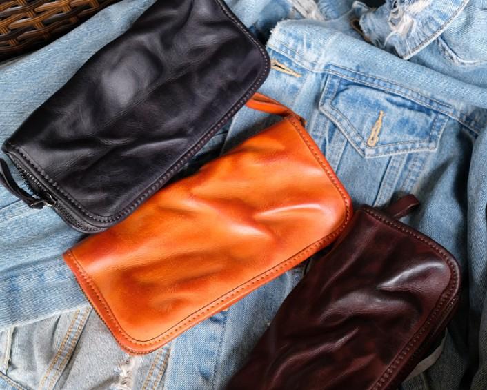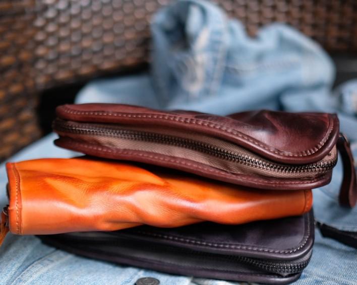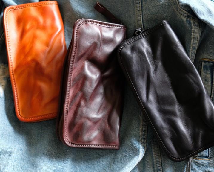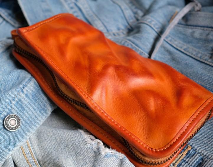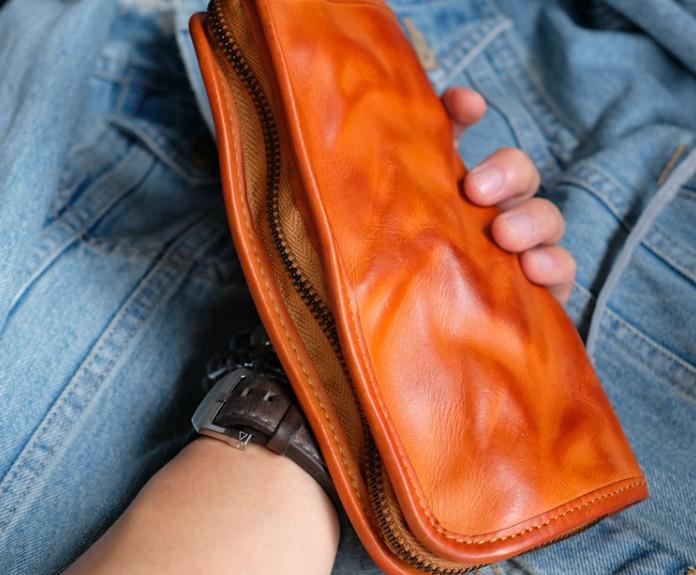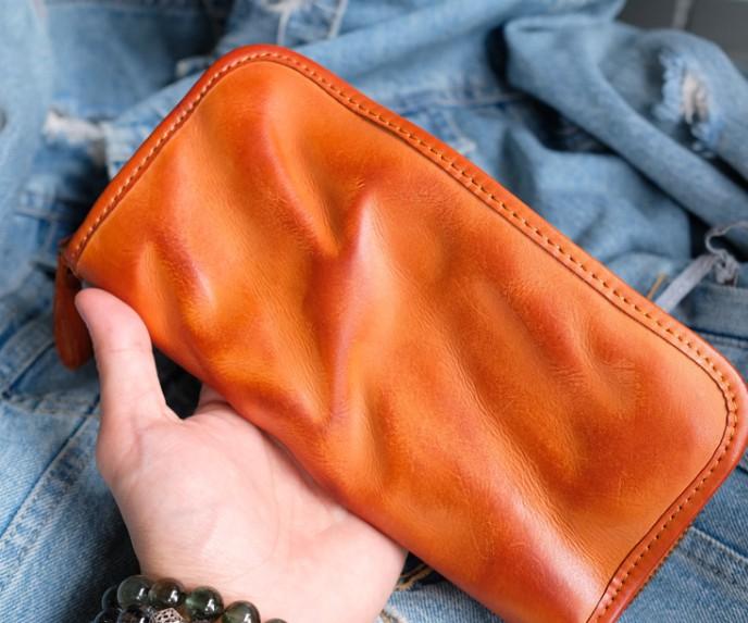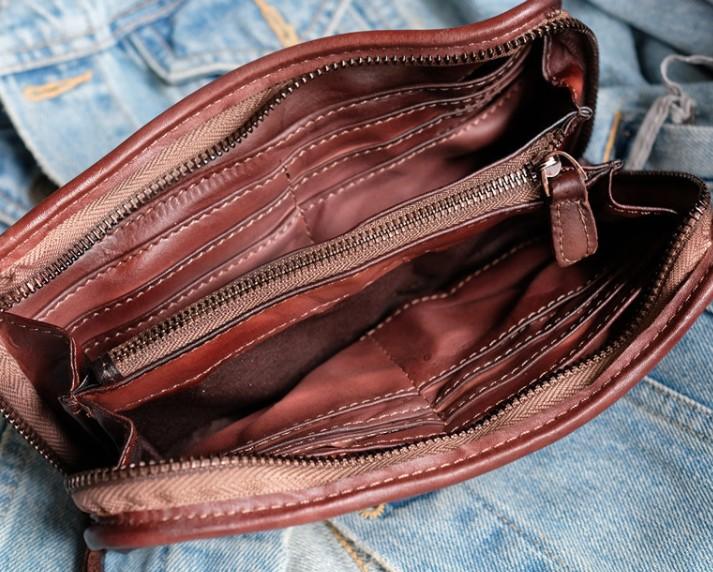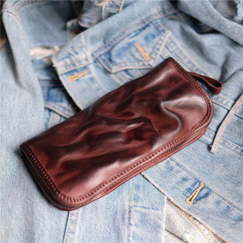 Cool Mens Leather Zipper Long Clutch Wallet Zipper Vintage Long Wallet For Men