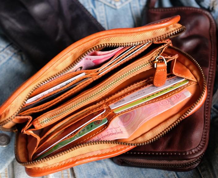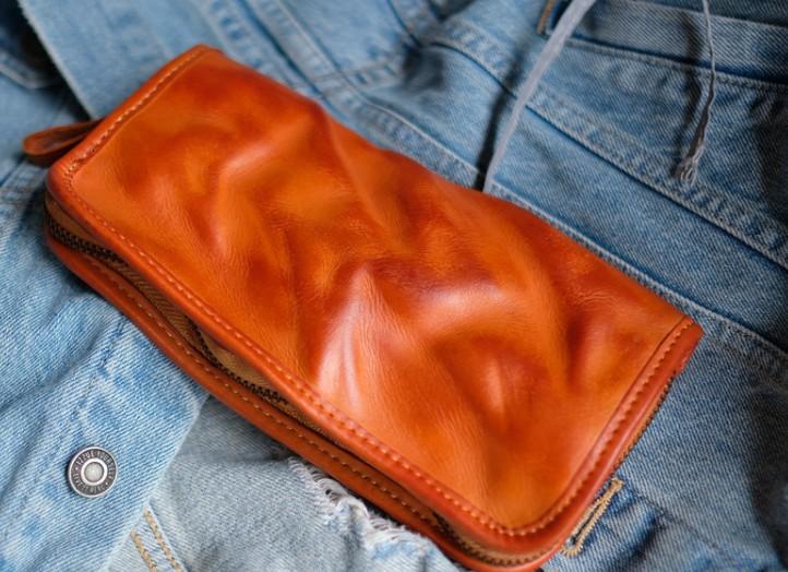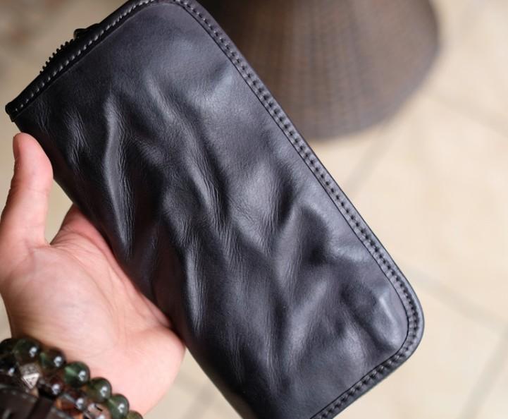 Design: Cool Mens Leather Zipper Long Clutch Wallet Zipper Vintage Long Wallet For Men
