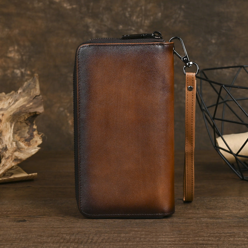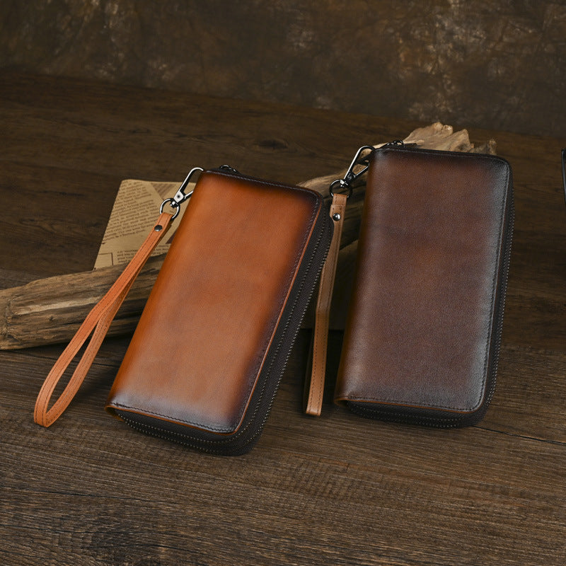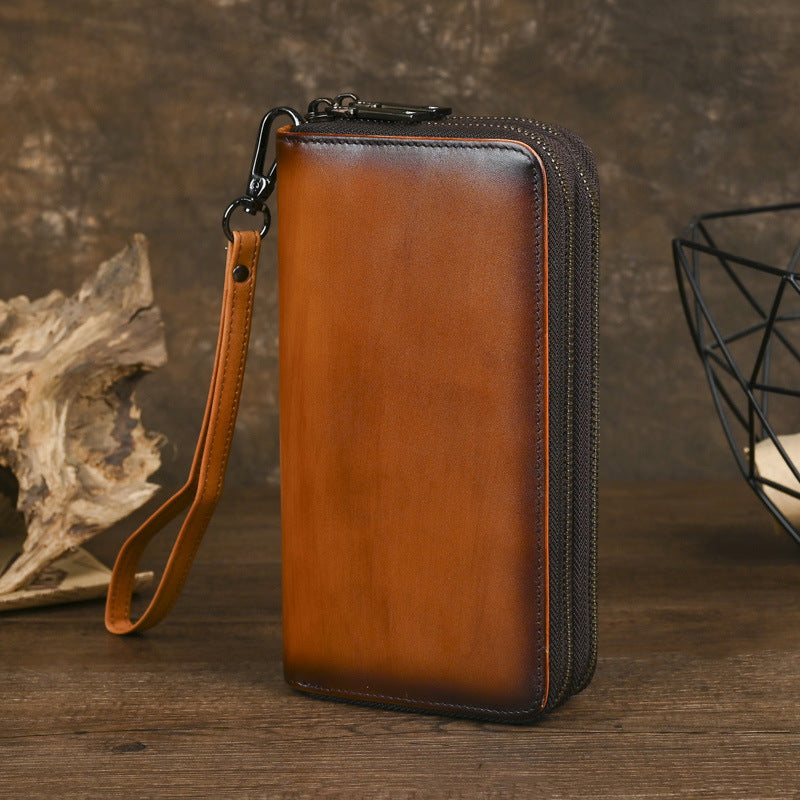 Design: Leather Double Zip Around Wallet for Men Long Mens Double Zip Wallet Wristlet