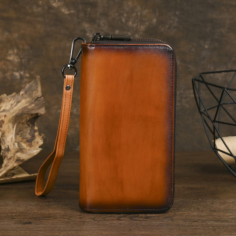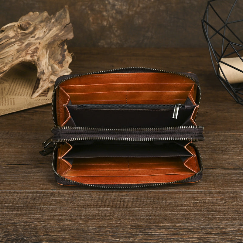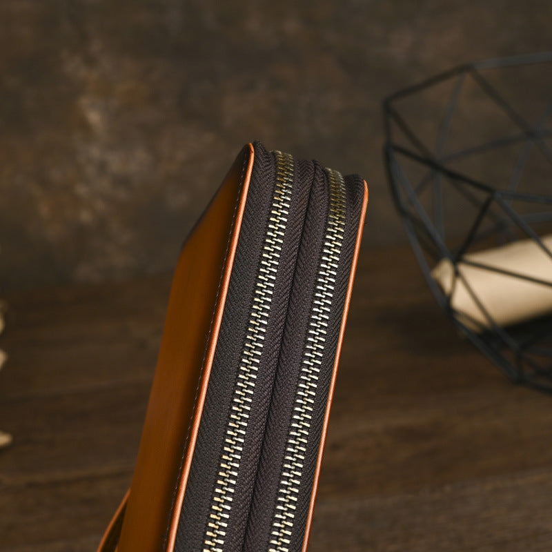The intelligent design of this Double Zip Around Wallet ensures that everything has its place while maintaining easy accessibility. The accordion-style interior allows the Men's Leather Clutch to expand when needed yet collapse to a sleek profile when not in use. The secure double-zipper closure provides complete protection for your valuables, making this the perfect companion for urban exploration, business travel, or daily commuting.