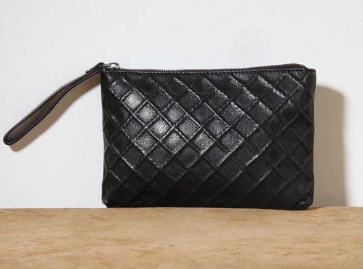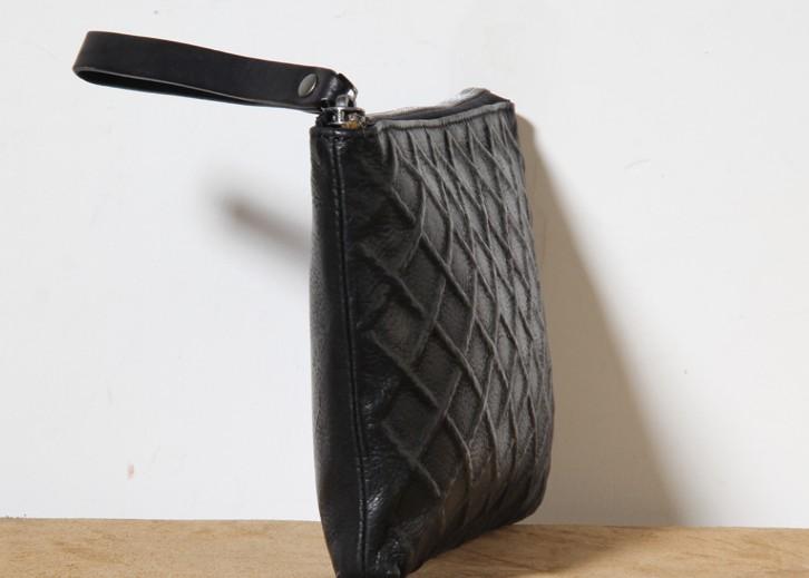 Design: Genuine Leather Braided Mens Clutch Cool Slim Wallet Zipper Clutch Wristlet Wallet for Men