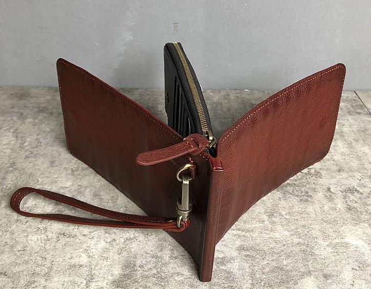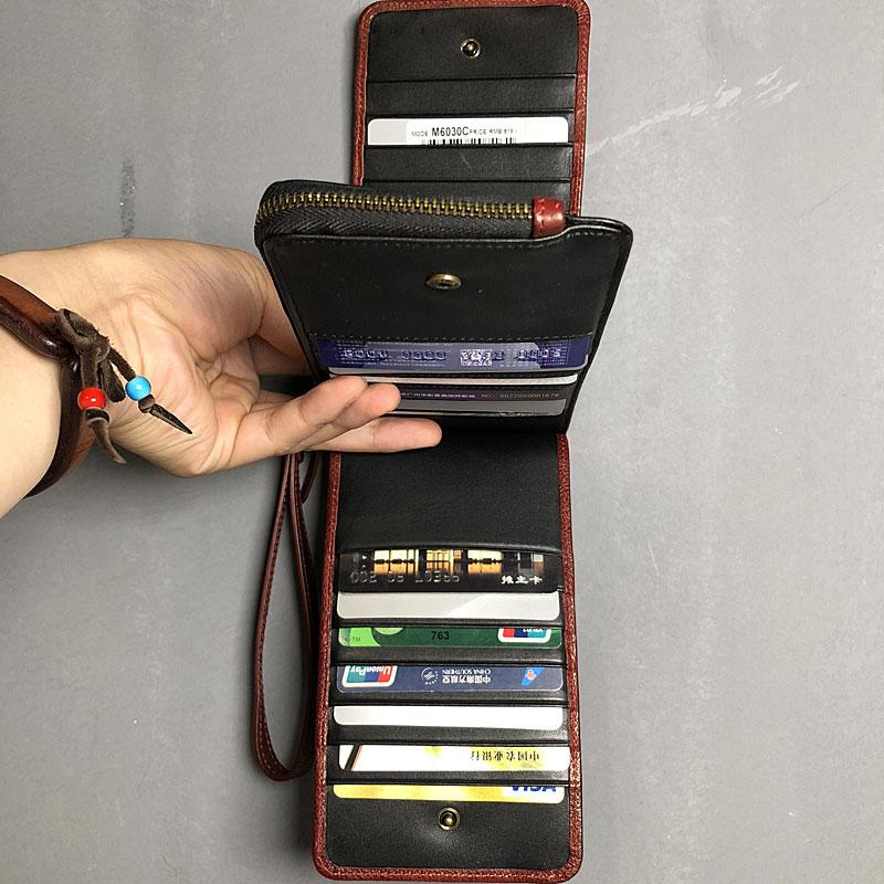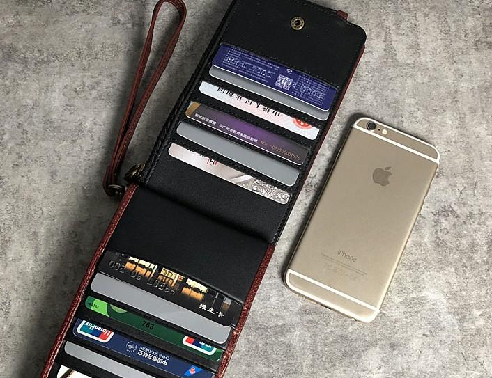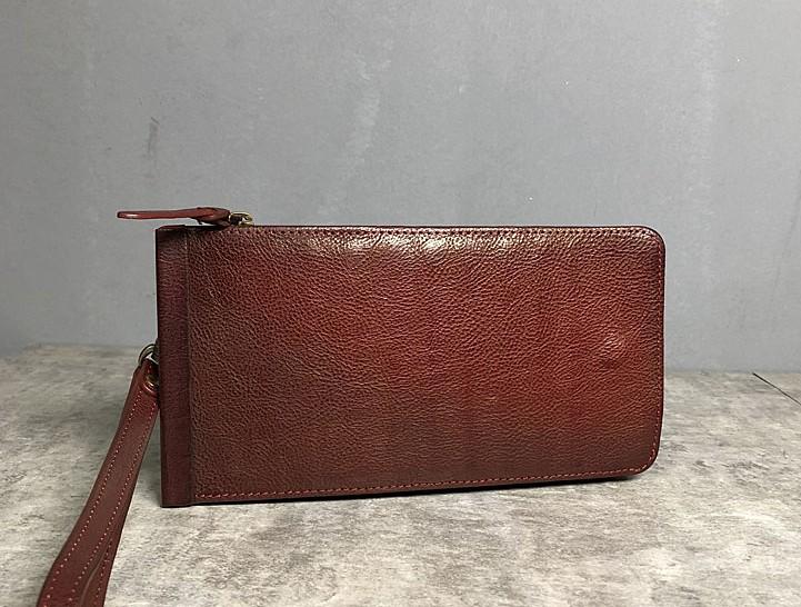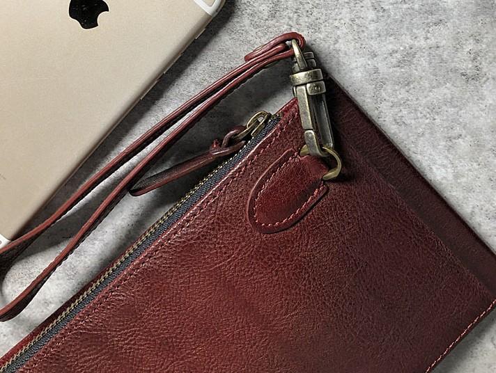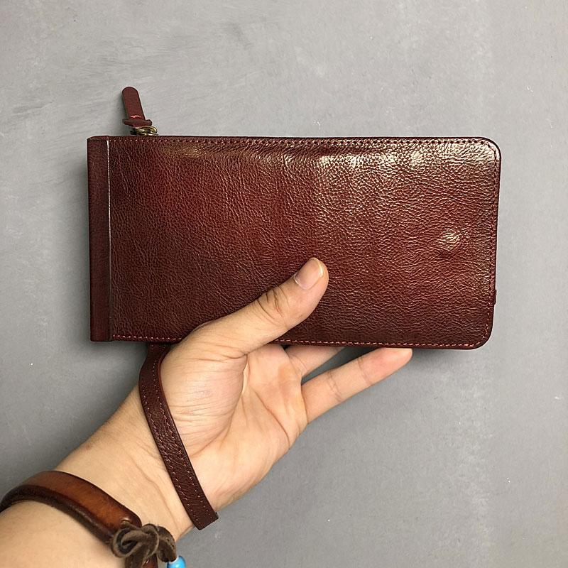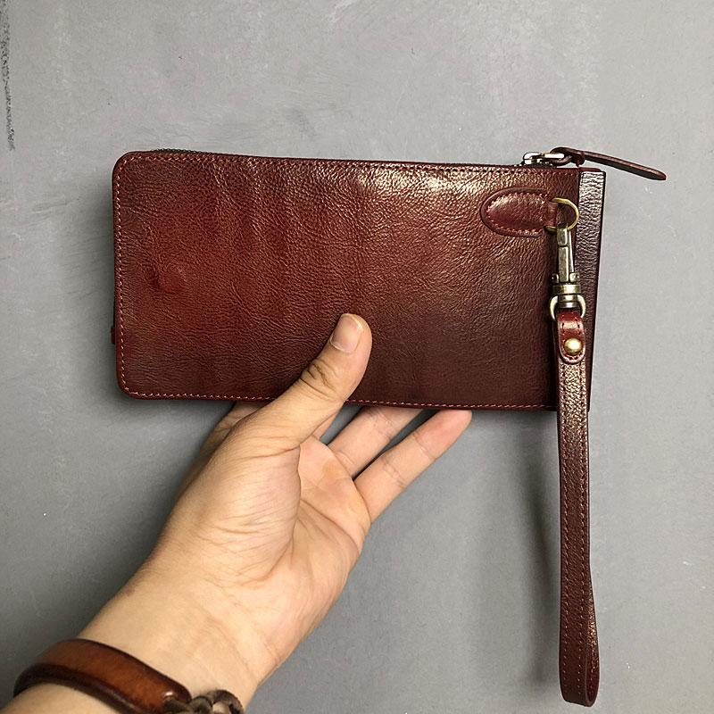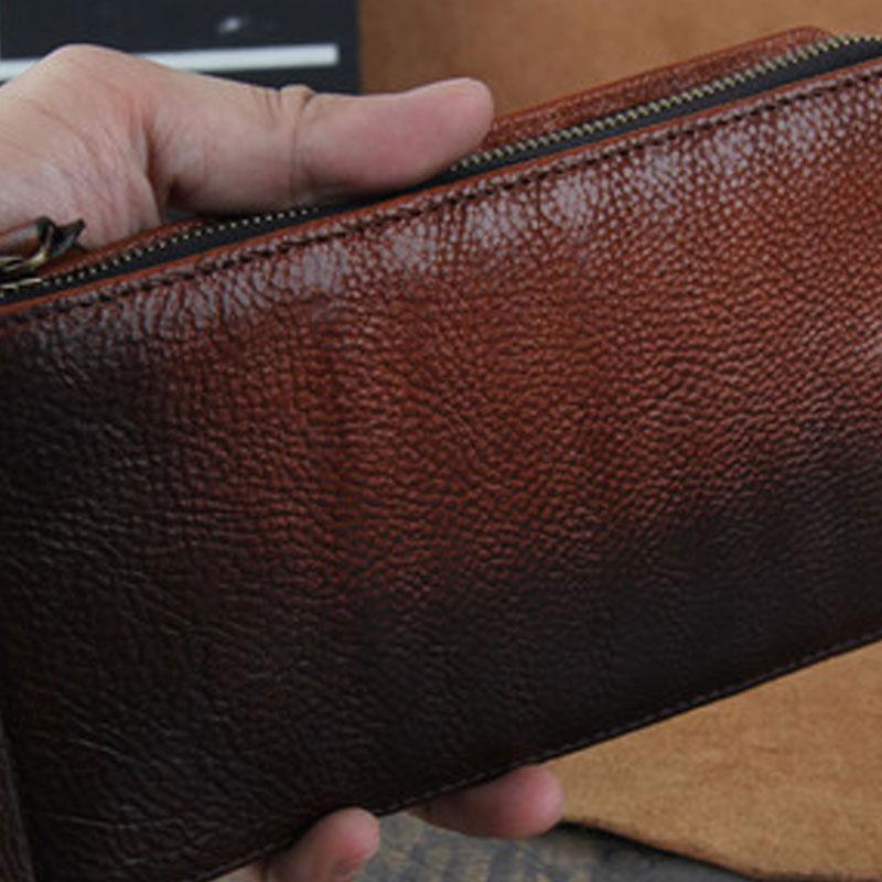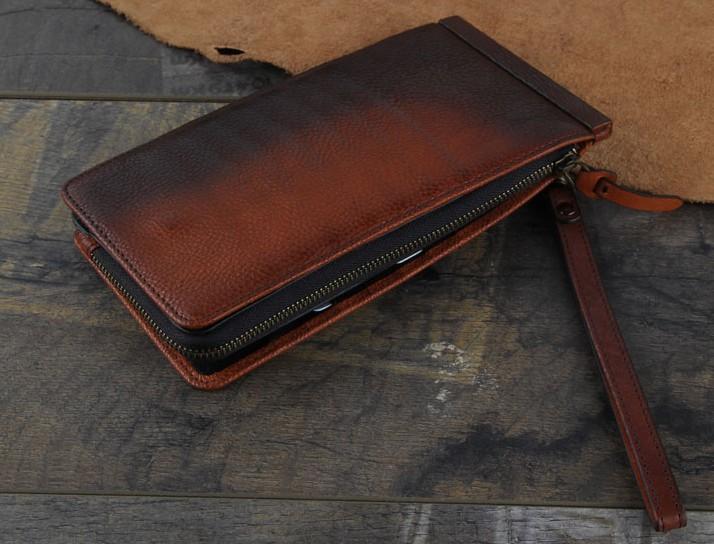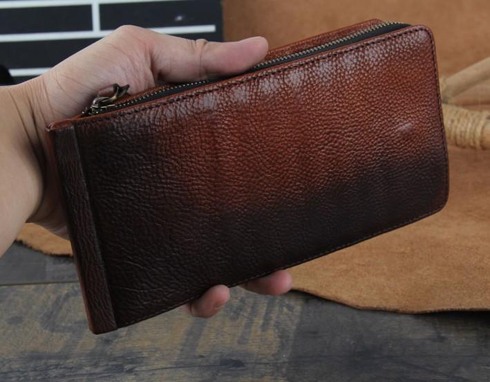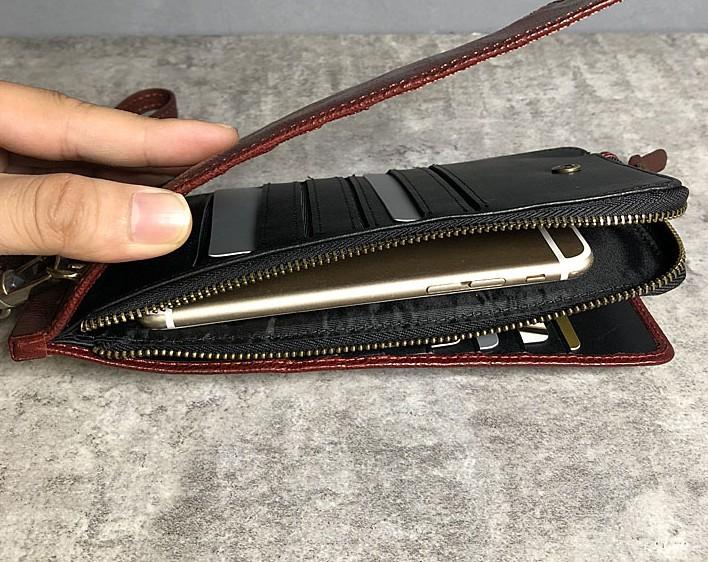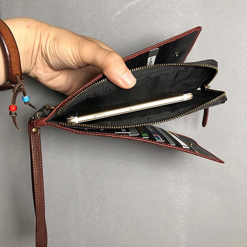 Design: Genuine Leather Mens Cool Long Leather Wallet Cards Phone Zipper Clutch Wristlet Wallet for Men