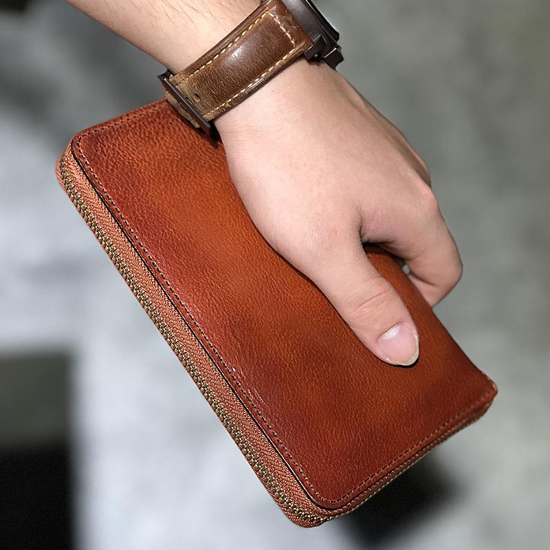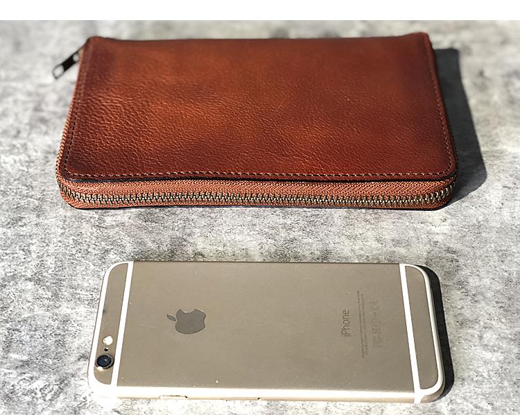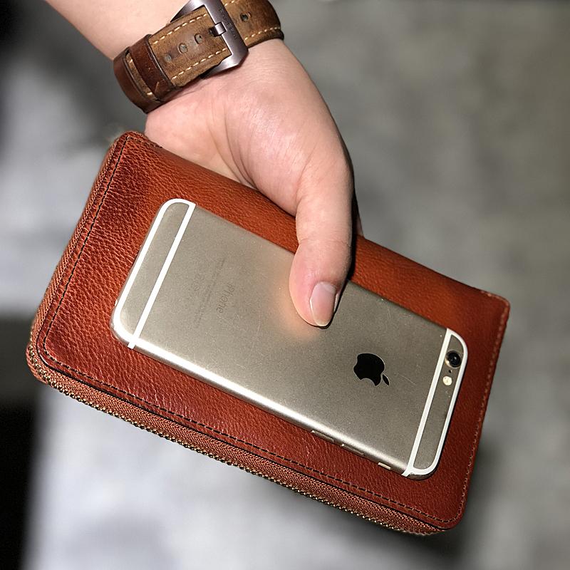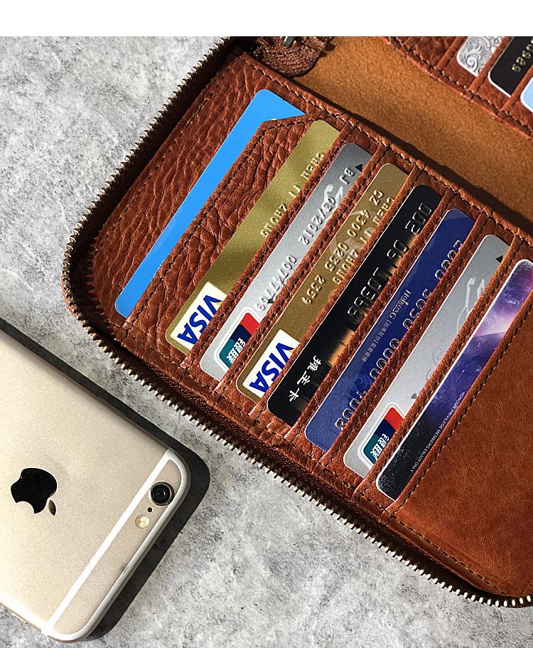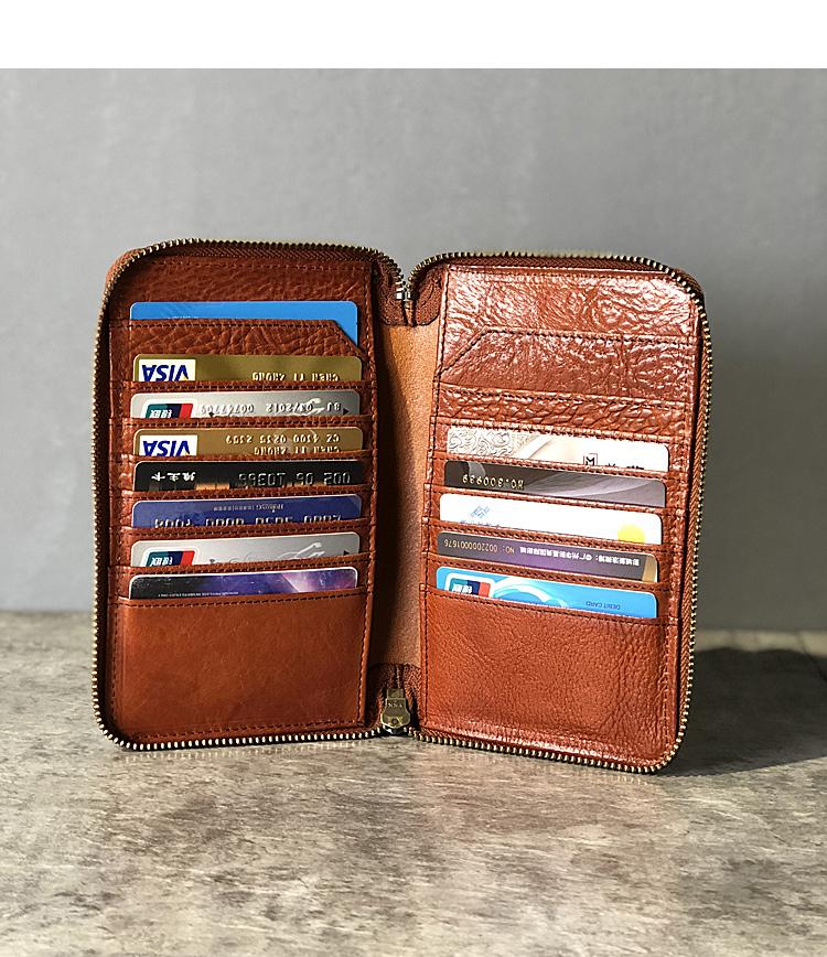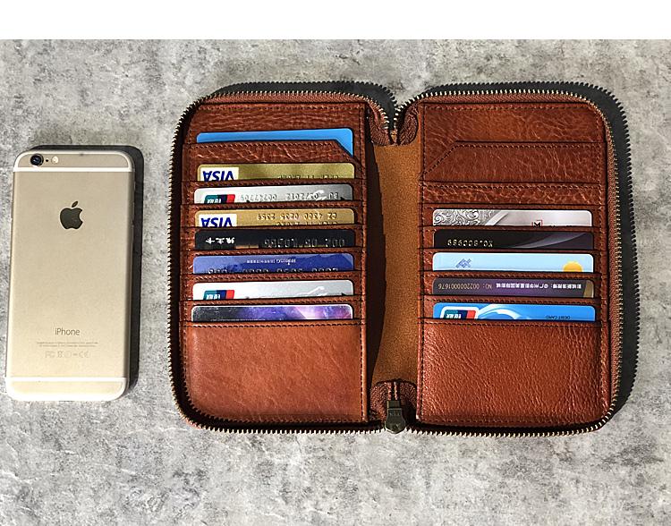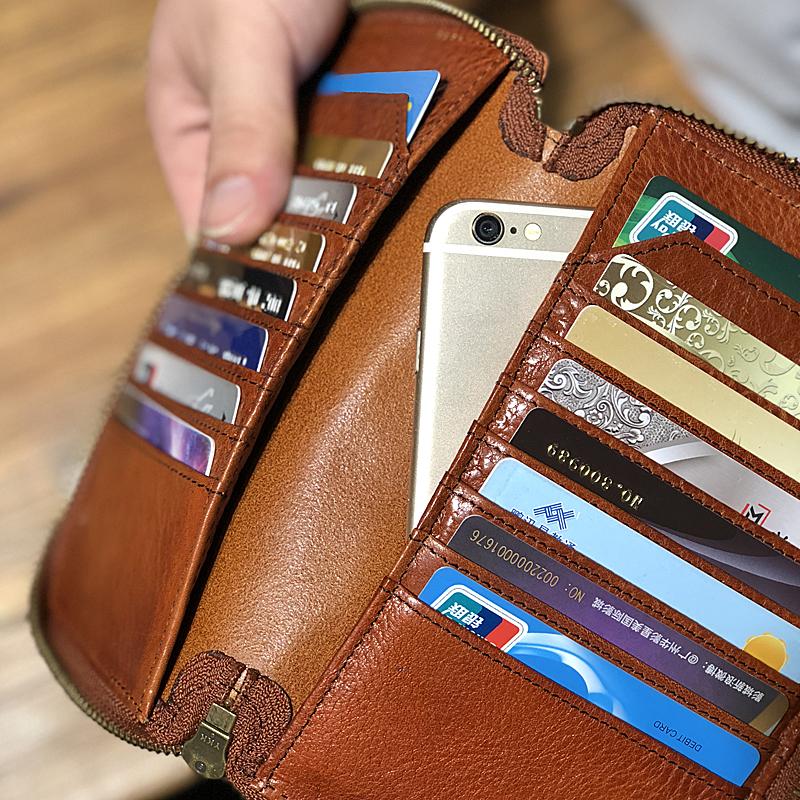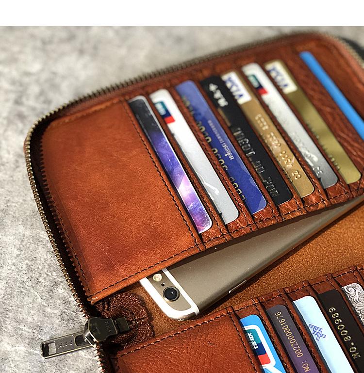 Design: Handmade Black Leather Mens Bifold Long Wallet Brown Multifunction Wallet Phone Wallets Card Holder Clutch Men