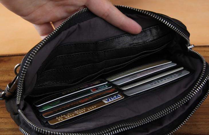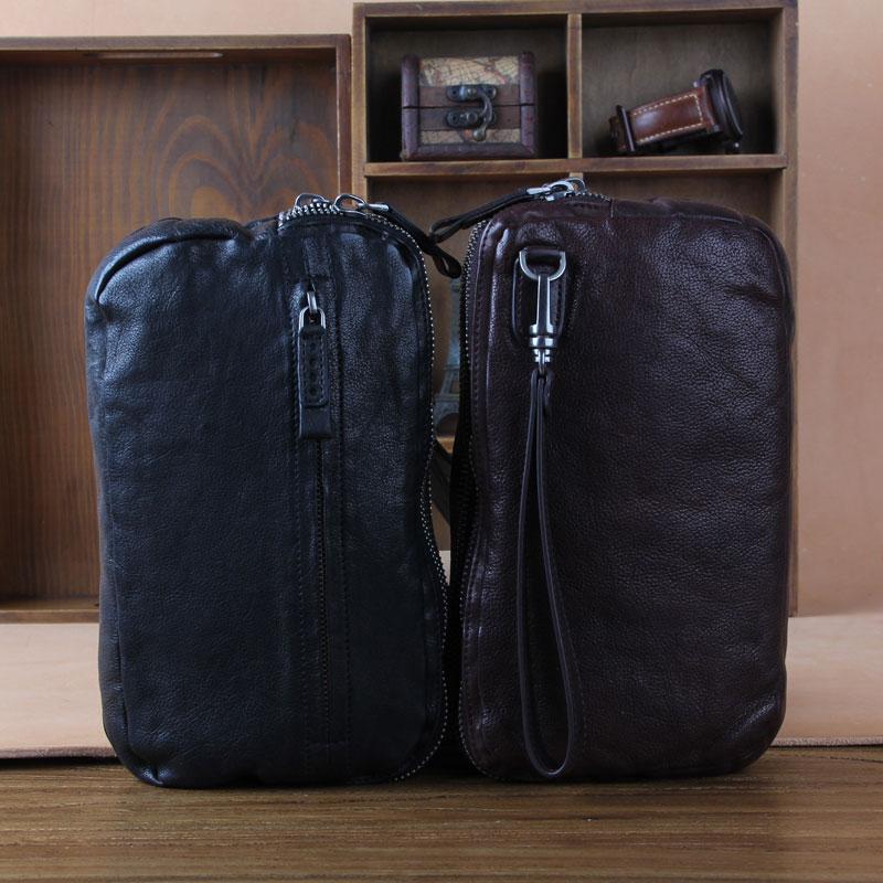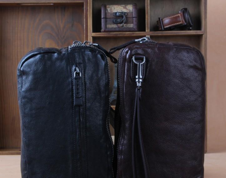 Design: Handmade Genuine Leather Mens Cool Long Leather Wallet Zipper Clutch Wristlet Wallet for Men