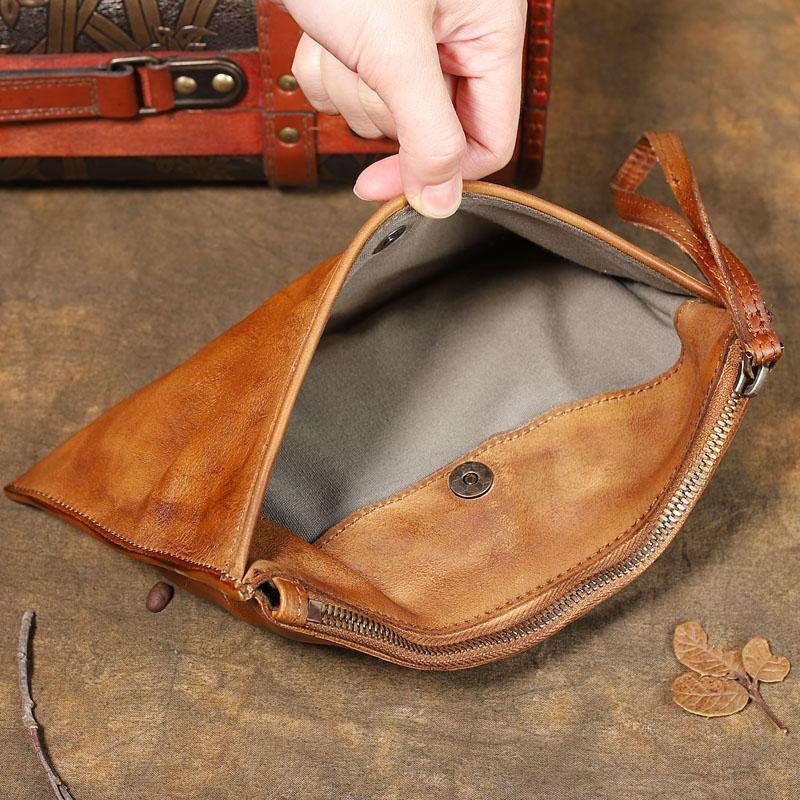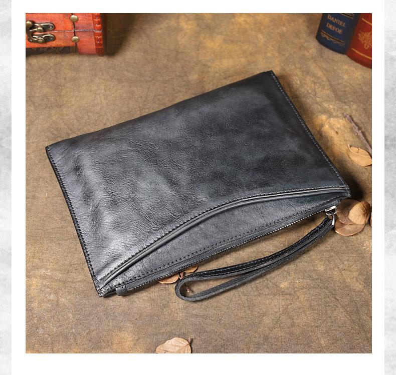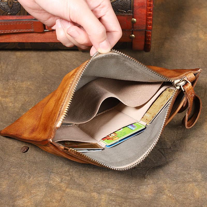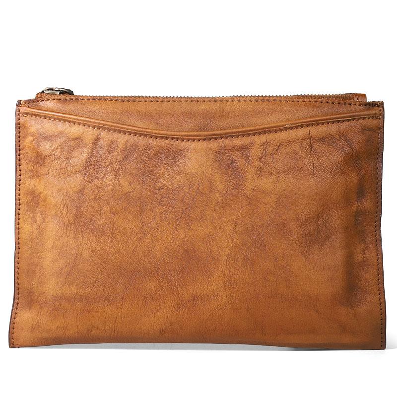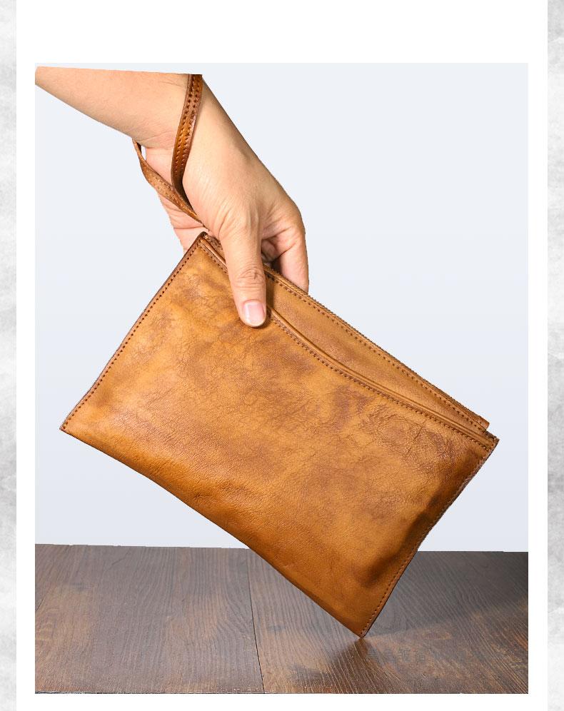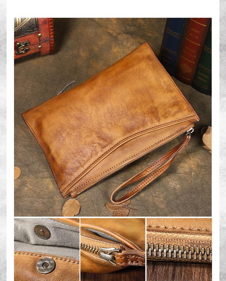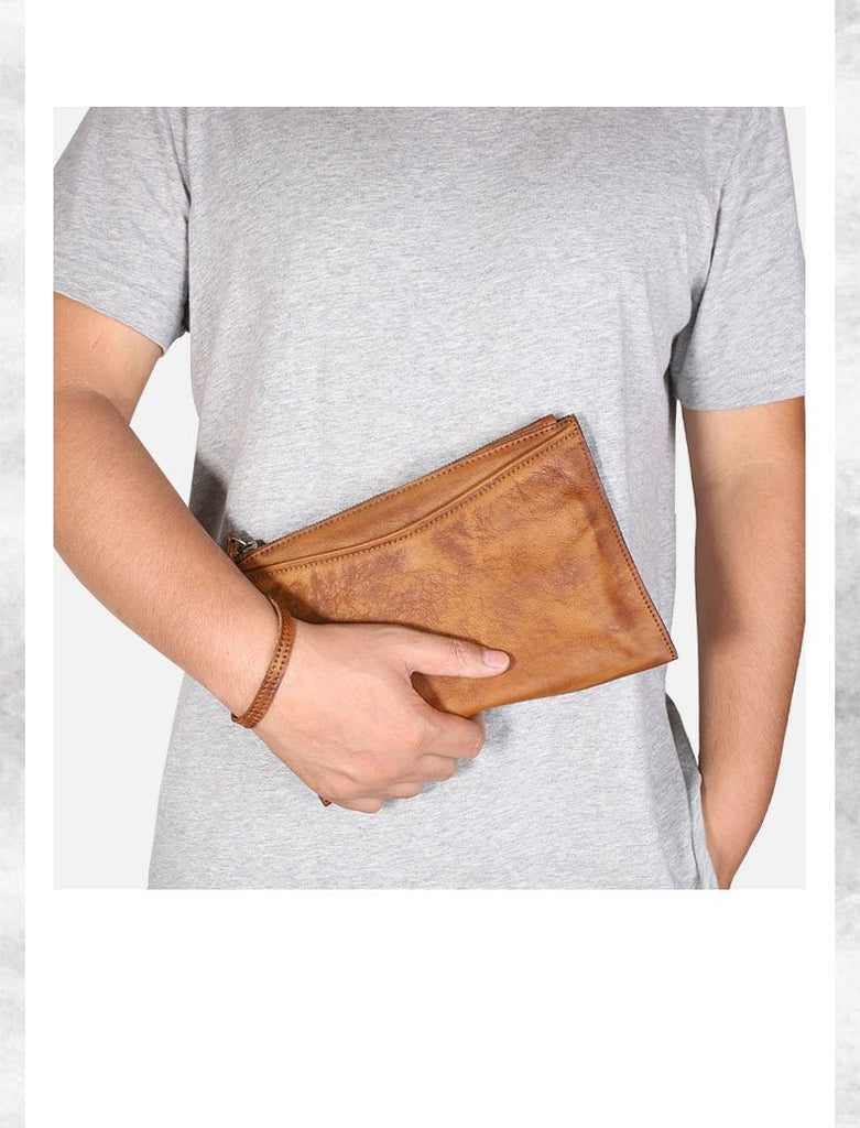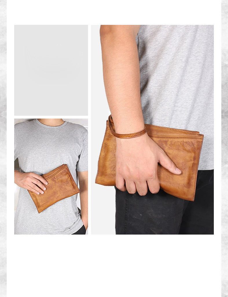 Style:Handmade Leather Mens 8 inches Brown Long Leather Wallet Envelope Bag Clutch Wallet for Men