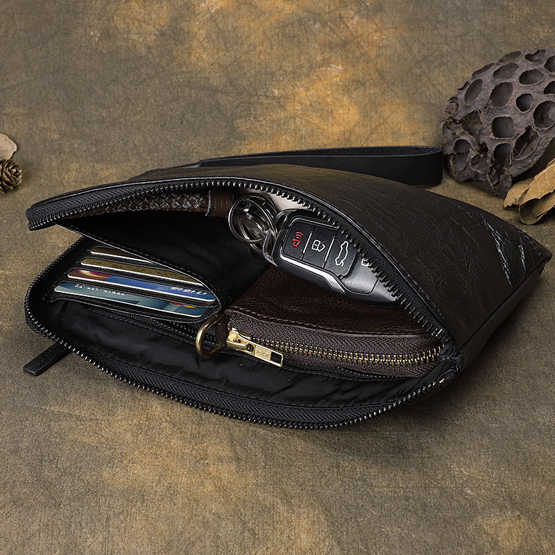 Design: Handmade Leather Mens Black Cool Multi-Card Long Wallet Wirstlet Bag Zipper Clutch Wallet for Men