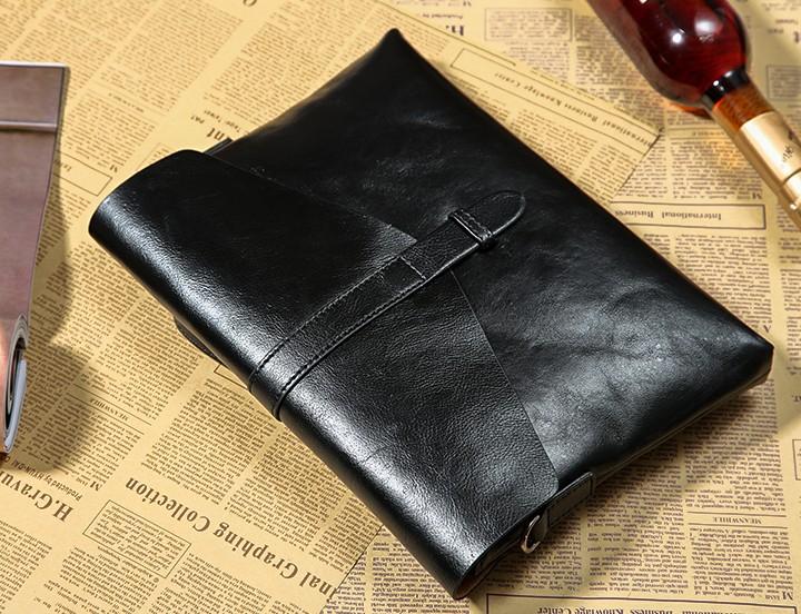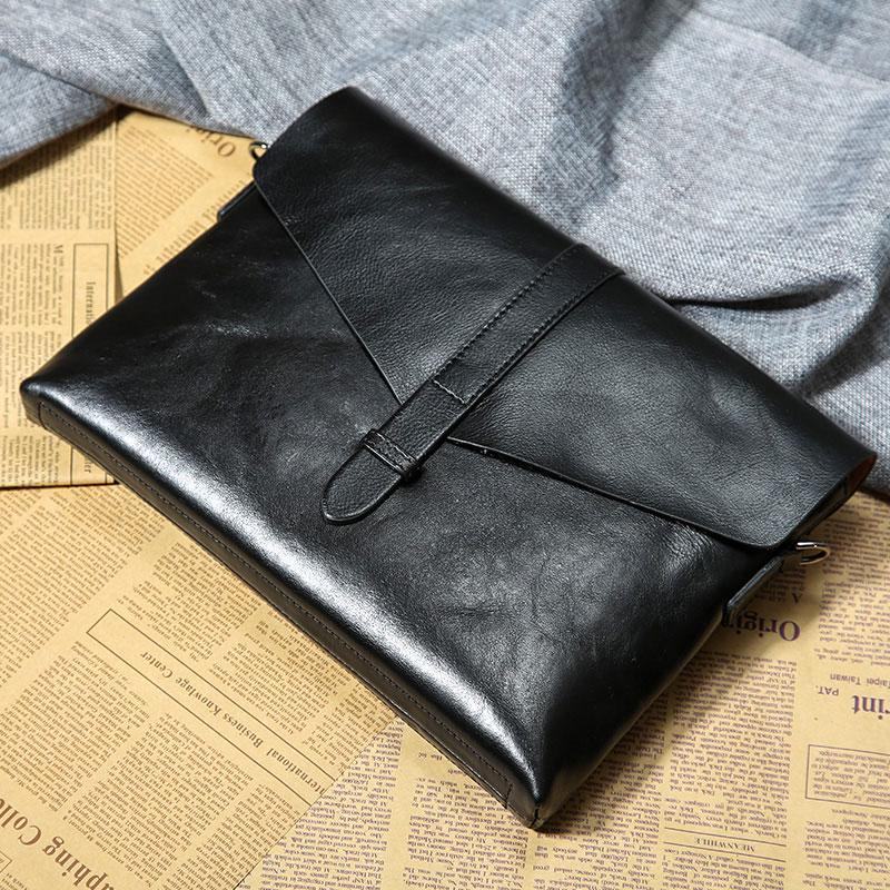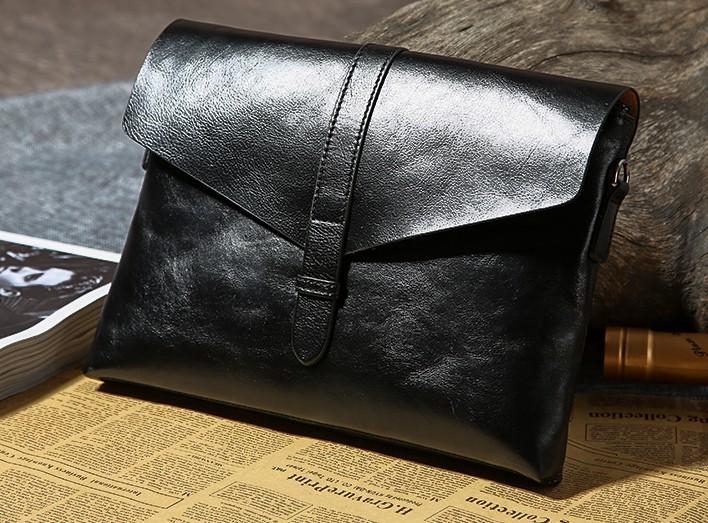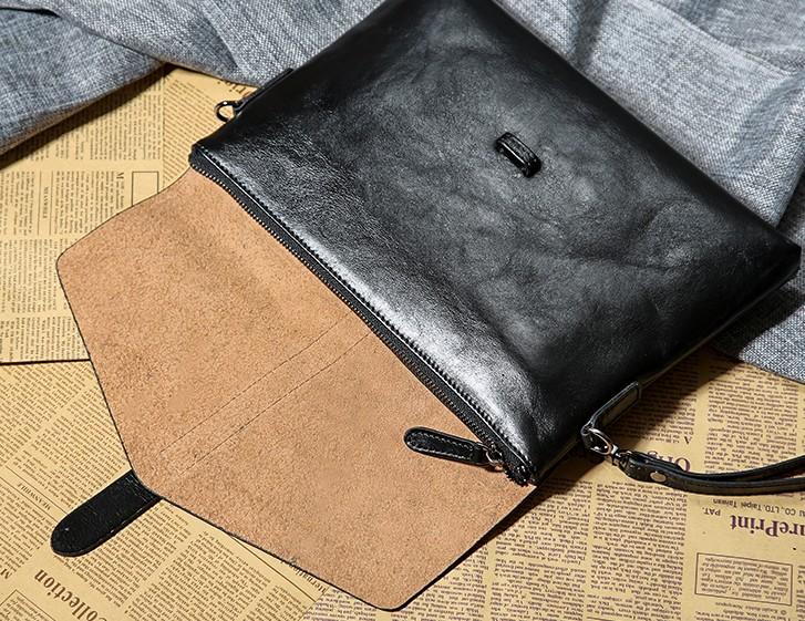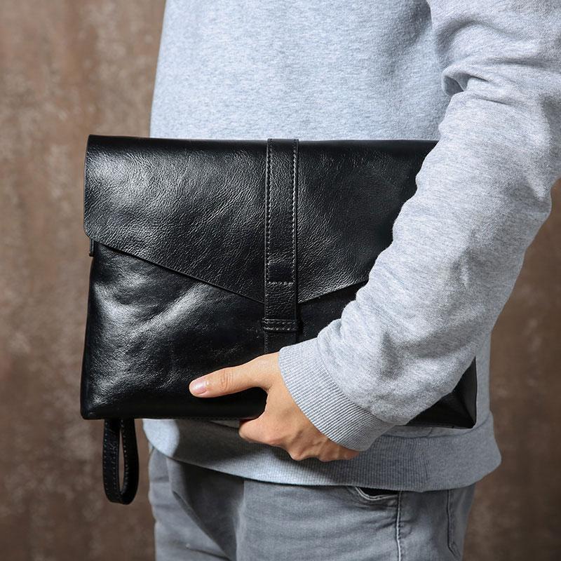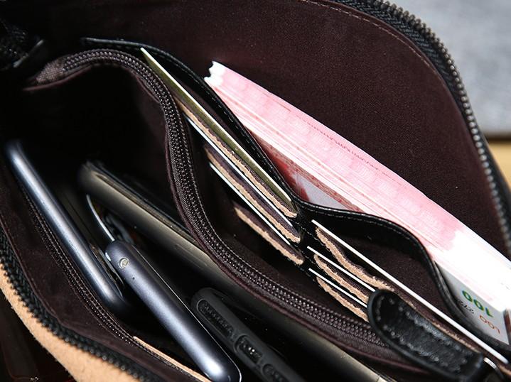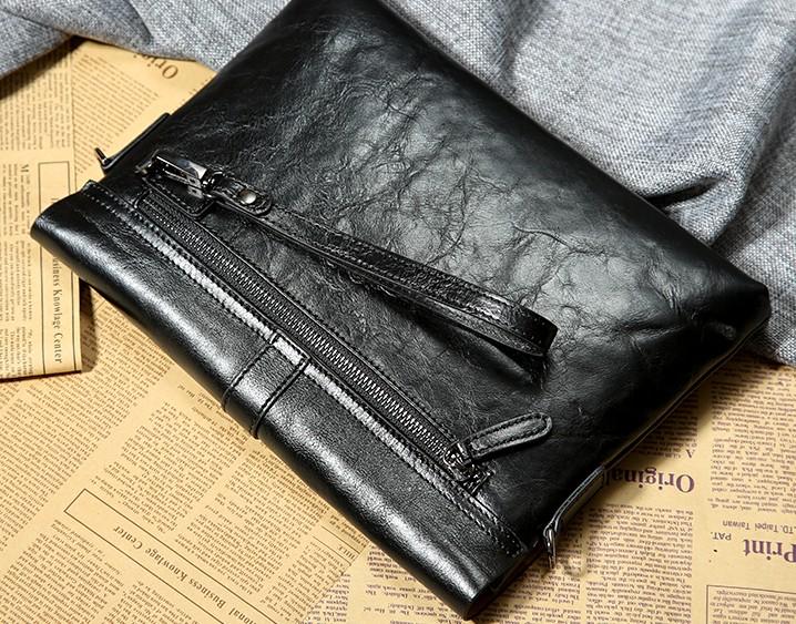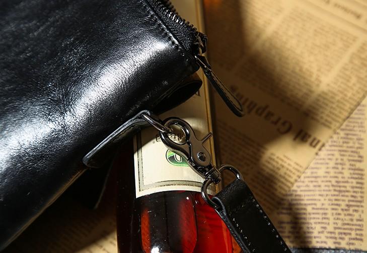 Design: Handmade Leather Mens Clutch Cool Slim Wallet Zipper Clutch Wristlet Bag Wallet for Men